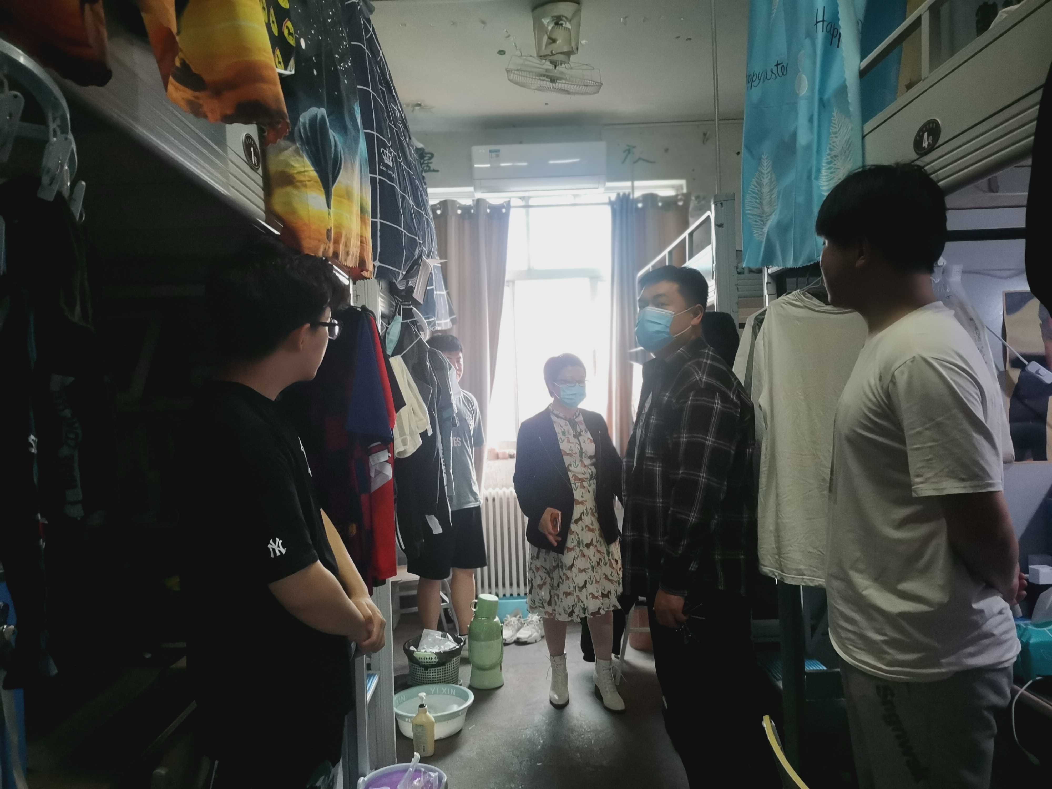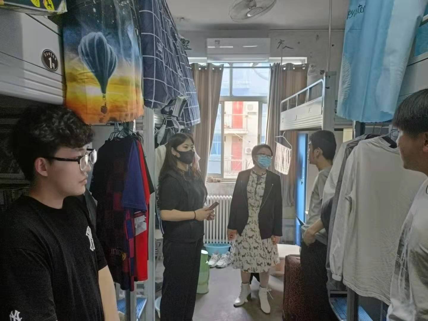 为落实学校做好全封闭管理下的疫情防控工作,进一步营造安全卫生的学生生活环境,4月25日,williamhill中文党委副书记丁波莉带领辅导员深入学生宿舍,认真检查落实宿舍疫情防控和安全工作。