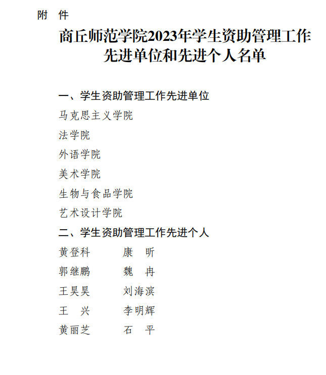 近日,学校下发《关于表彰2023年学生资助管理工作先进单位和先进个人的决定》(商师学政〔2023〕22号),我院被评为“2023年度学生资助管理工作先进单位”,辅导员刘海滨被评为“学生资助管理工作先进个人”。