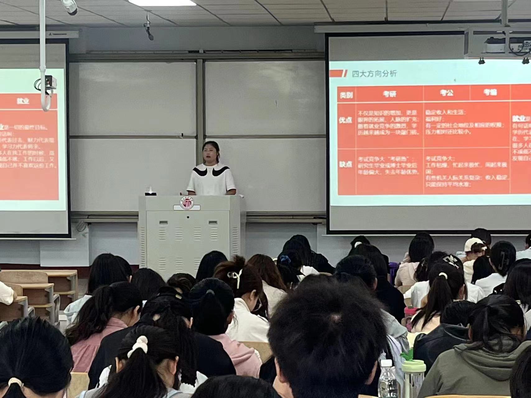 在2021级学生教育会上,党委副书记丁波莉就做好学生就业和考研工作,她鼓励大家要坚定信心,积极备考;根据不同专业的特点和考研要求,提出了相应的备考计划和策略,提供了宝贵的考研指导和建议。就安全问题,她要求大家要把安全知识牢记在心中,做到防患于未然,在全院营造安全、健康、文明的良好氛围。