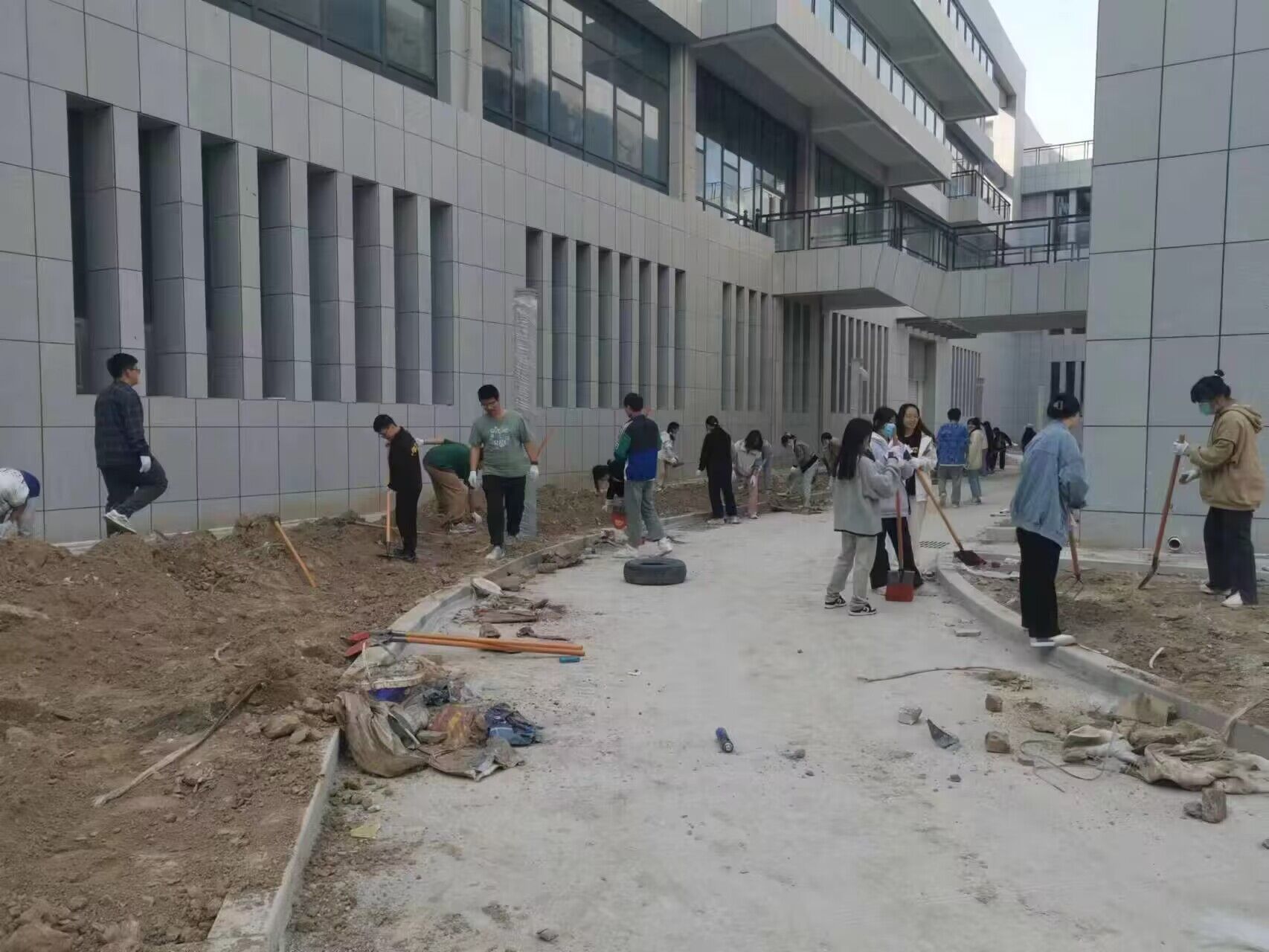 参与清理工作的学子们分成若干小组,分别负责不同的区域和任务,用拖把、扫帚、垃圾桶、铁锹、锄头等工具对垃圾进行清理。在工作期间,志愿者们清理空地和台阶上的灰尘和污渍,用工具挖出外侧绿化带中的砖头石块,并将清理下来的垃圾倒入垃圾桶,工作结束后将工具带回。参加活动的同学们努力劳动,确保自己负责的任务高质量完成,感受劳动成果带来的满足感和自豪感,他们用自己的行动表达了对劳动的热爱和对环境保护的关注。