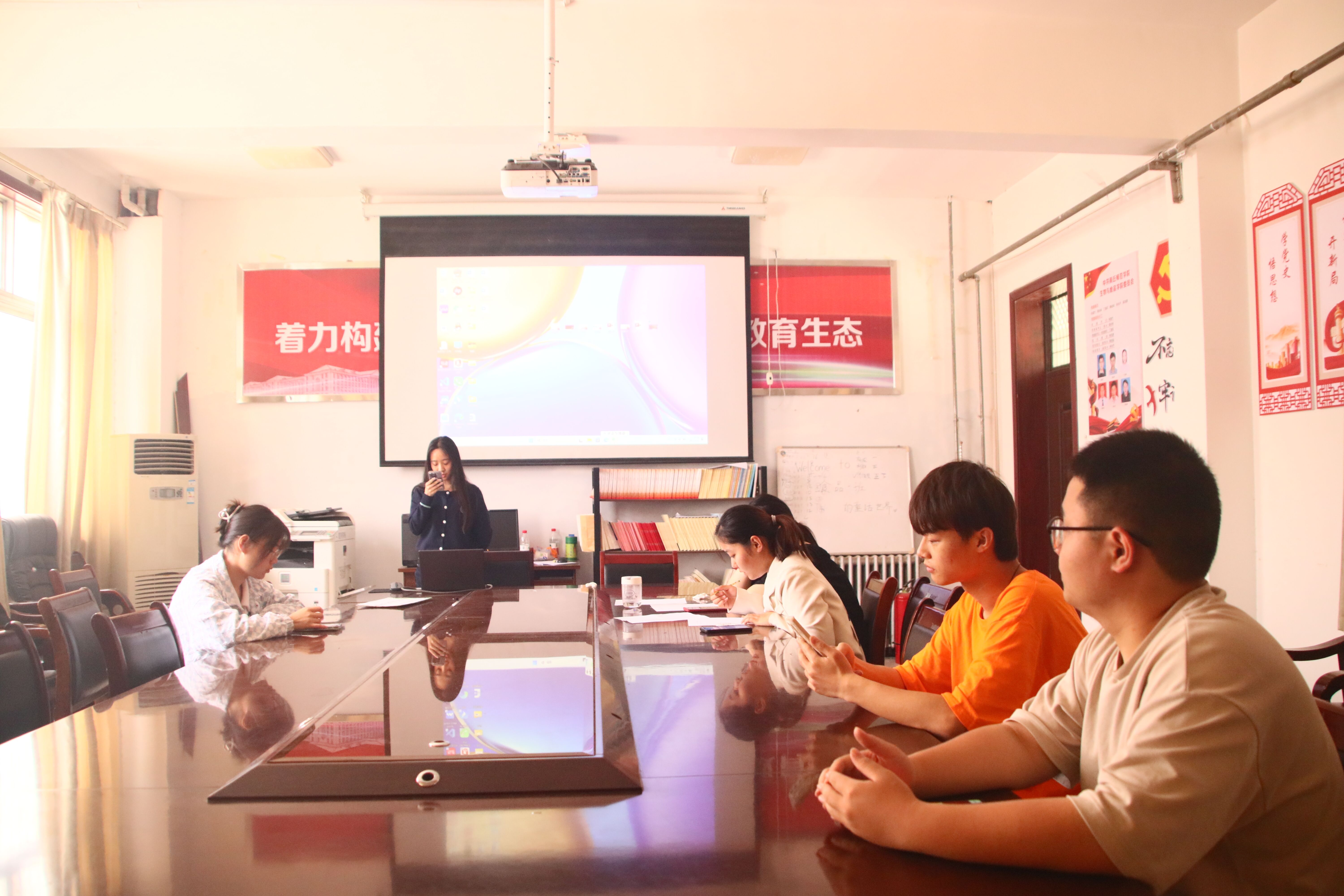 比赛伊始,主持人向同学们的到来表示热烈欢迎。接着,主持人讲解了本次比赛的注意事项和评分标准,随后宣布比赛开始。参赛选手精神饱满,依次上前展示并讲解自己的PPT,阐述着自己对于党的二十大精神的认识思考、学习方法及实践事迹。