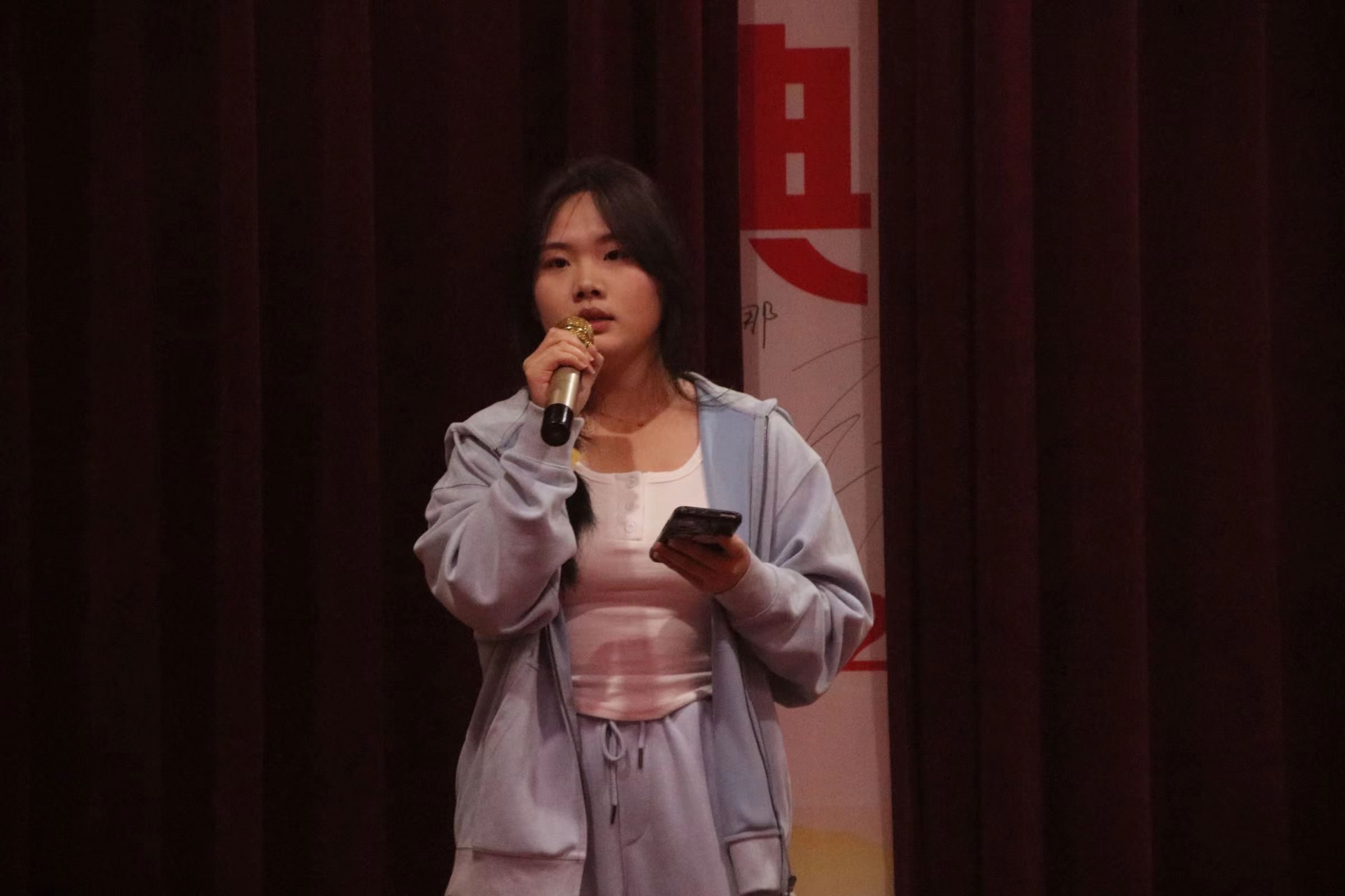 比赛伊始,由两位主持人介绍比赛规则及评分细则,然后宣布比赛正式开始。紧接着,各位选手依次登台进行演唱,尽情地展示着自己的歌喉,选手们优美的歌声、活力四射的姿态、饱含深情的演唱将现场的氛围一次次推向高潮。比赛过程中,台下观众们深深陶醉其中,报告厅响起一阵又一阵热烈的掌声。