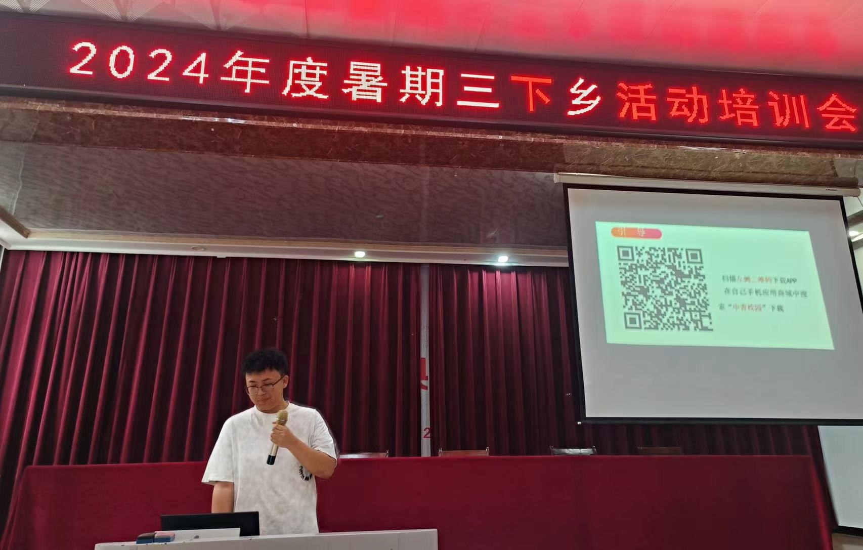 培训会伊始,组织部成员张振业对暑期社会实践文件进行解读,并向大家强调“三下乡”社会实践活动的重要意义。随后,他又向同学们讲解了如何在中青校园app上进行队伍组建、加入团队及团队报备等相关步骤。
