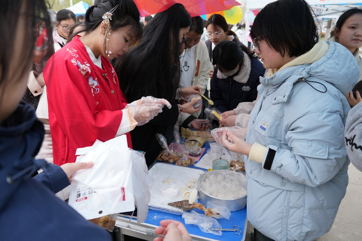 活动现场,充满了浓厚的文化氛围。同学们心怀对传统文化的热忱与对美食的期待,三两成群、笑意盈盈地相聚于此,满怀着憧憬开启了这场别开生面的美食文化之旅。在制作环节,大家可以选择制作芋泥奶酪盒子或养胃山药糕,食品与营养社的成员们在旁耐心指导,从食材的准备、制作步骤到技巧要点,都一一细致讲解,空气中弥漫着香甜的气息,每一份作品都饱含着大家对美食的热爱和对传统文化的敬意。而桂花酥的发放区域同样热闹非凡,同学们对香甜酥脆的桂花酥赞不绝口。