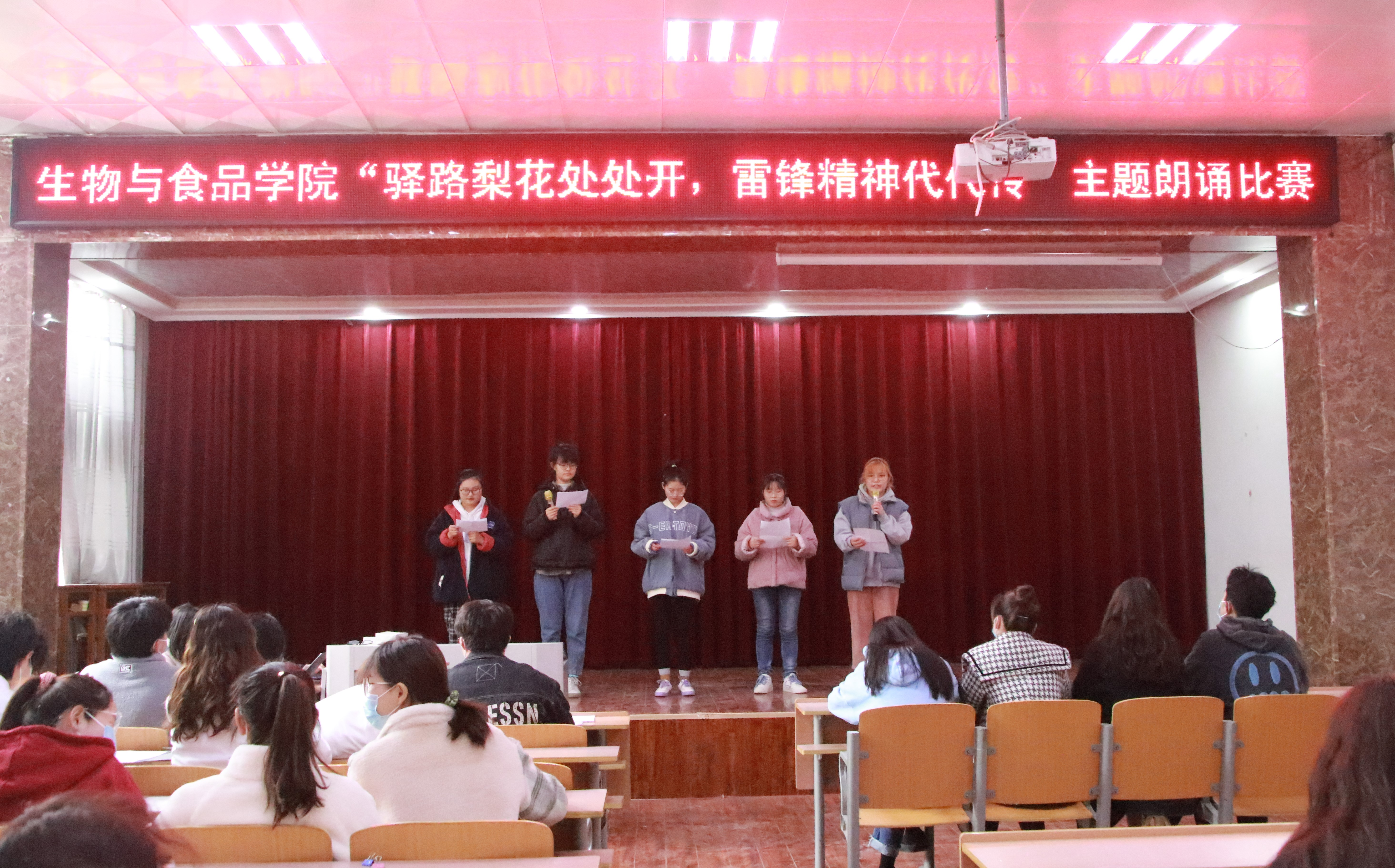本次比赛圆满结束。此次朗诵比赛的进行,不仅为同学们提供了一个展示自我才华的机会,展现了当代大学生的青春风采,更表明了我院学生乐于向雷锋同志学习的态度和用实际行动诠释永恒的雷锋精神的决心。