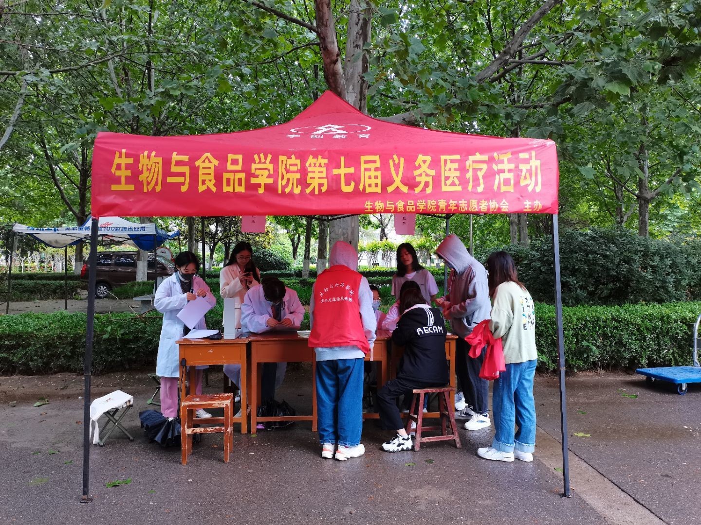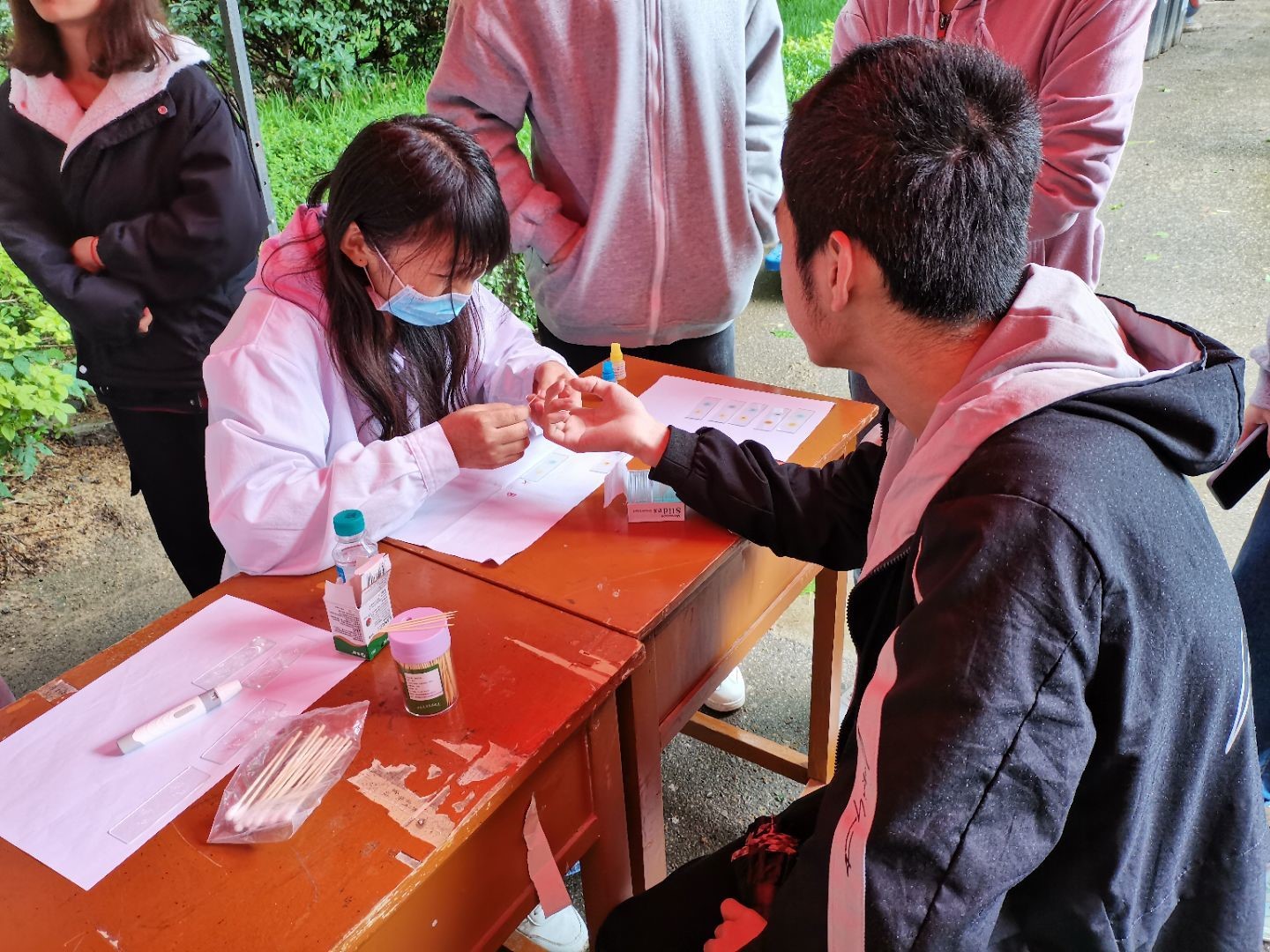 本次活动的主题为“助力免费医疗,促进健康生活”,内容为给同学们免费测血压、血型。在活动过程中,同学们都积极参加,工作人员也充分地将自己的专业知识运用到实践中去,细心地为参与者捆绑测压带,准确告知参与者的血压值并提出了相应的提高健康水平的建议;也有工作人员耐心为参与者测量血型,从采集血样到静置观察再到通知结果,工作人员全程有条不紊的操作,也在一定程度上缓解了前来测血型的同学的紧张。通过本次测量,参与者知道了自己的血型,了解了自己的血压情况,并且表示以后要规律作息、加强体育锻炼,提高自己的身体素质。