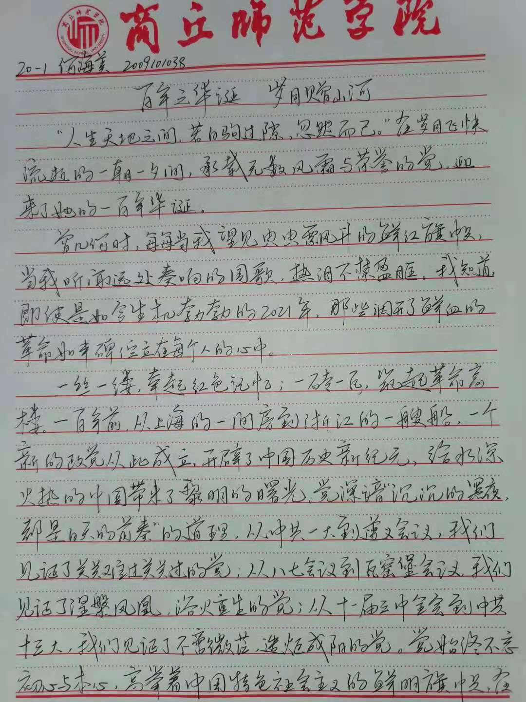 为纪念党的一百周年华诞,热情讴歌中国共产党领导中国革命取得的伟大成就,激发同学们的写作热情,充实校园文化生活,williamhill中文于2021年5月20日-5月27日期间举办了“重温百年辉煌党史,畅谈建党百年成就”主题征文比赛。本次比赛由我院团总支学生会学习部举办,参加本次比赛的有我院全体在校学生。