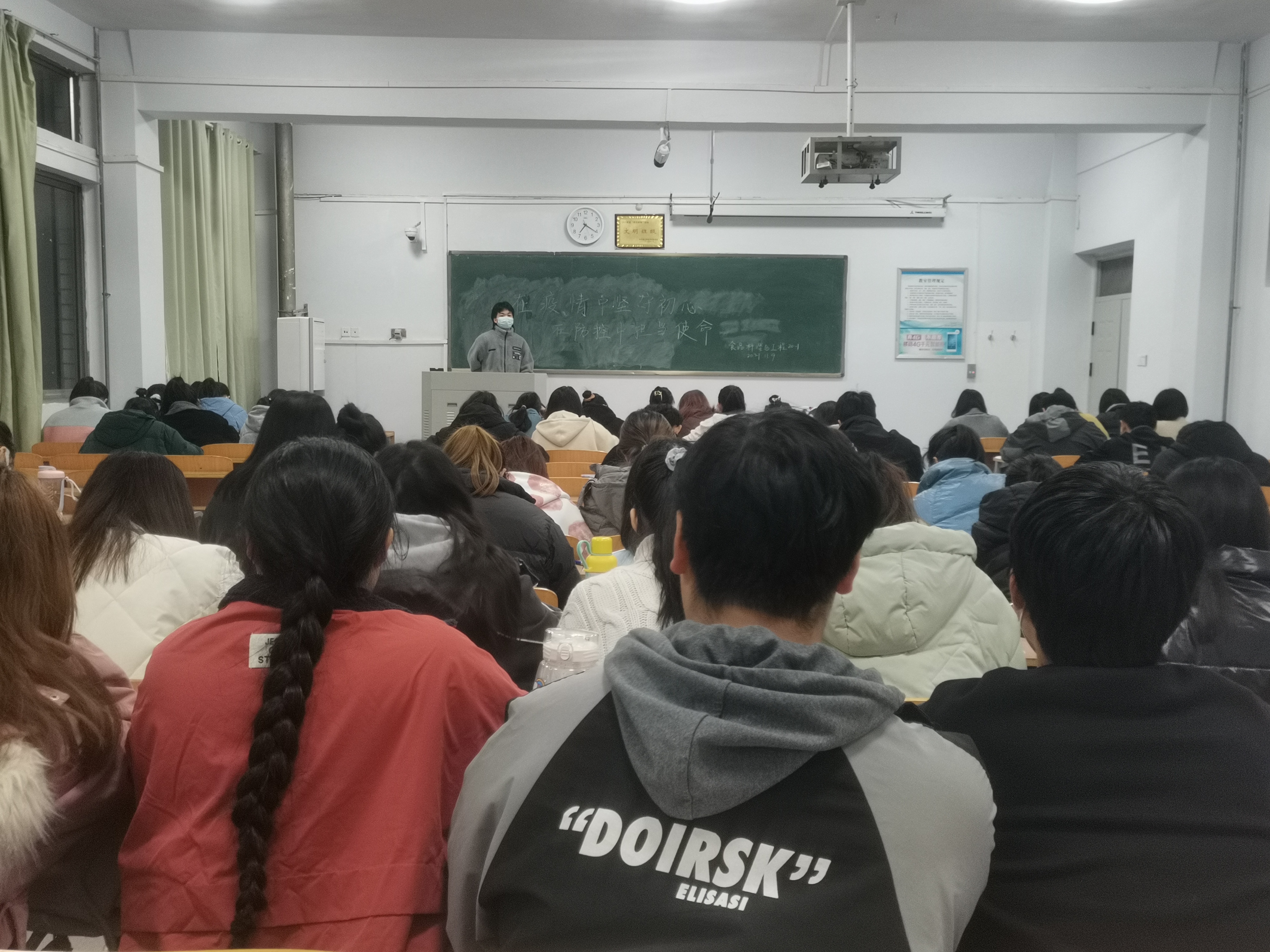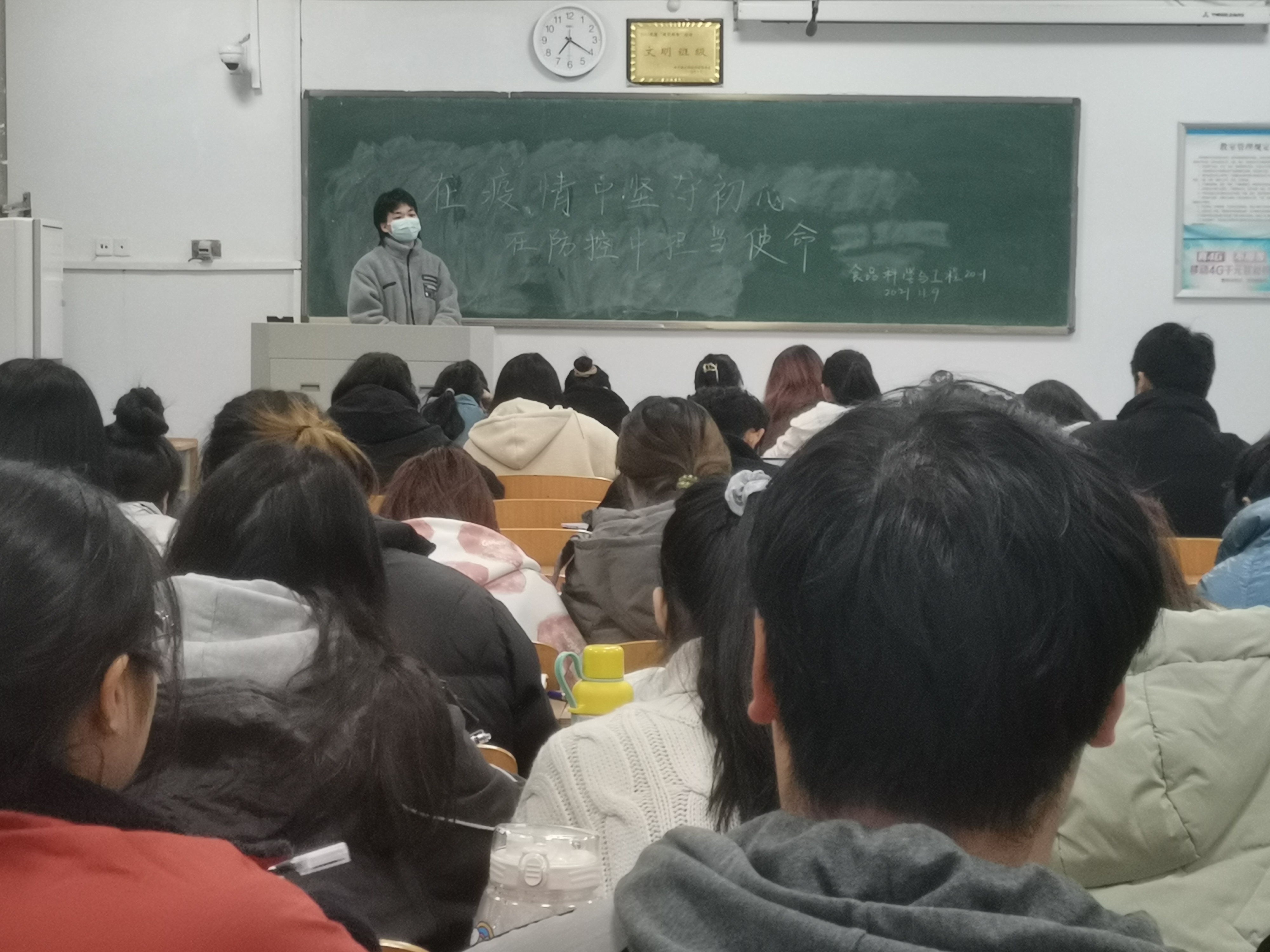 为了增强学生疫情防控意识,让学生掌握疫情防控的基本知识,并落实到生活实际中,2021年11月10日晚食品科学与工程20-1班在一号教学楼自习室开展疫情防控主题团日活动,此次活动由班长李超主持,食品科学与工程20-1班全体同学参加本次活动。