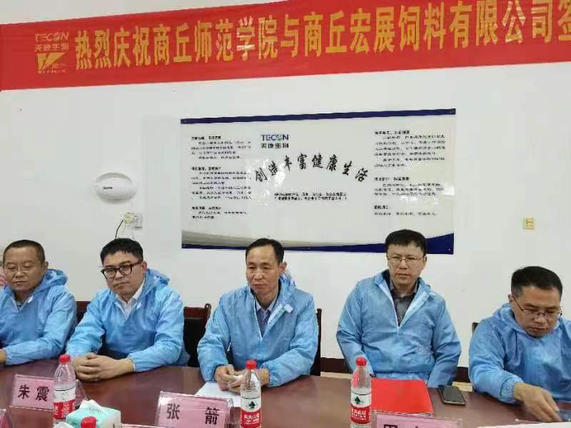 8月30日上午,副校长张箭一行到商丘宏展饲料有限公司开展访企拓岗活动。在宏展公司会议室举行了访企拓岗促就业暨“动物营养研发中心”的签约和揭牌仪式。我校副校长张箭,商丘宏展饲料有限公司总经理王晓宾,校地合作服务中心副主任张凯,williamhill中文全体班子成员及宏展公司主要领导出席仪式并进行座谈交流。