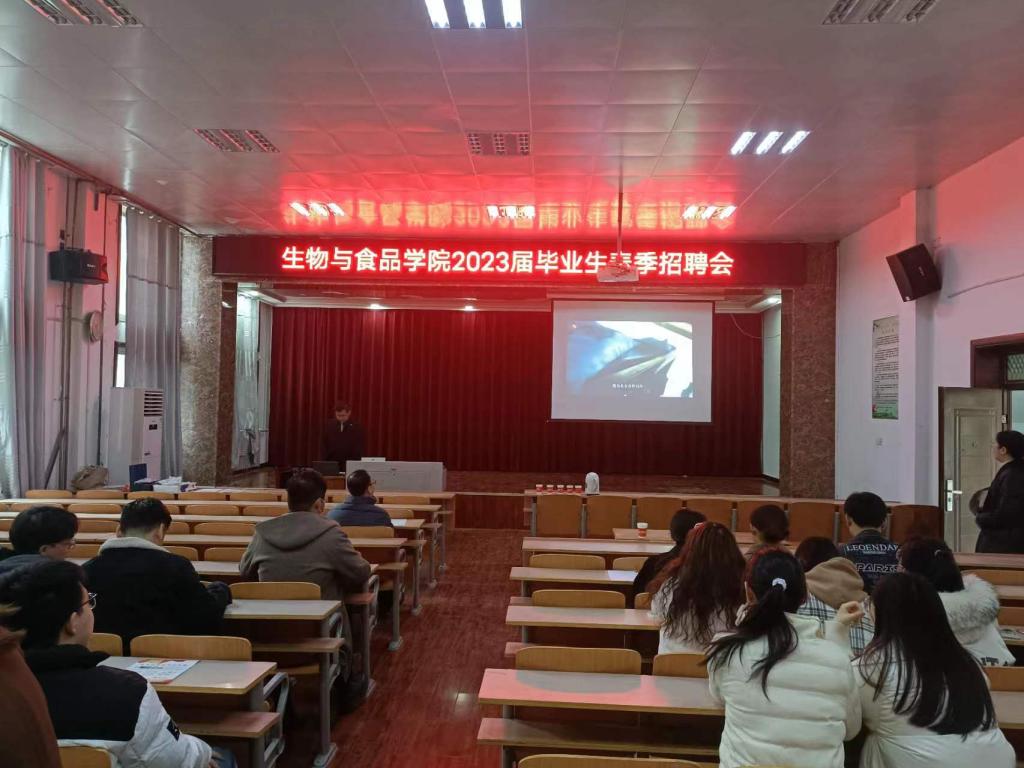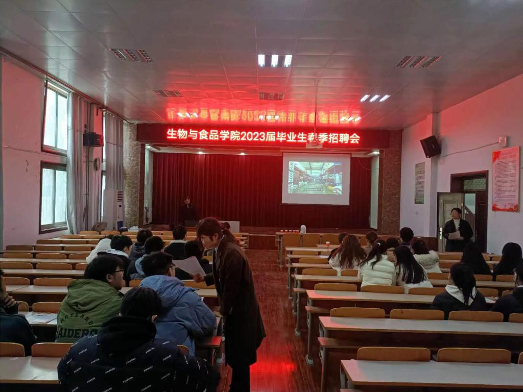 3月17日下午,禾丰集团在williamhill中文报告厅举办招聘会活动。禾丰集团人力资源部来校招聘,党委副书记丁波莉、毕业班辅导员刘海滨参加招聘会,60余名本科生参加招聘会。