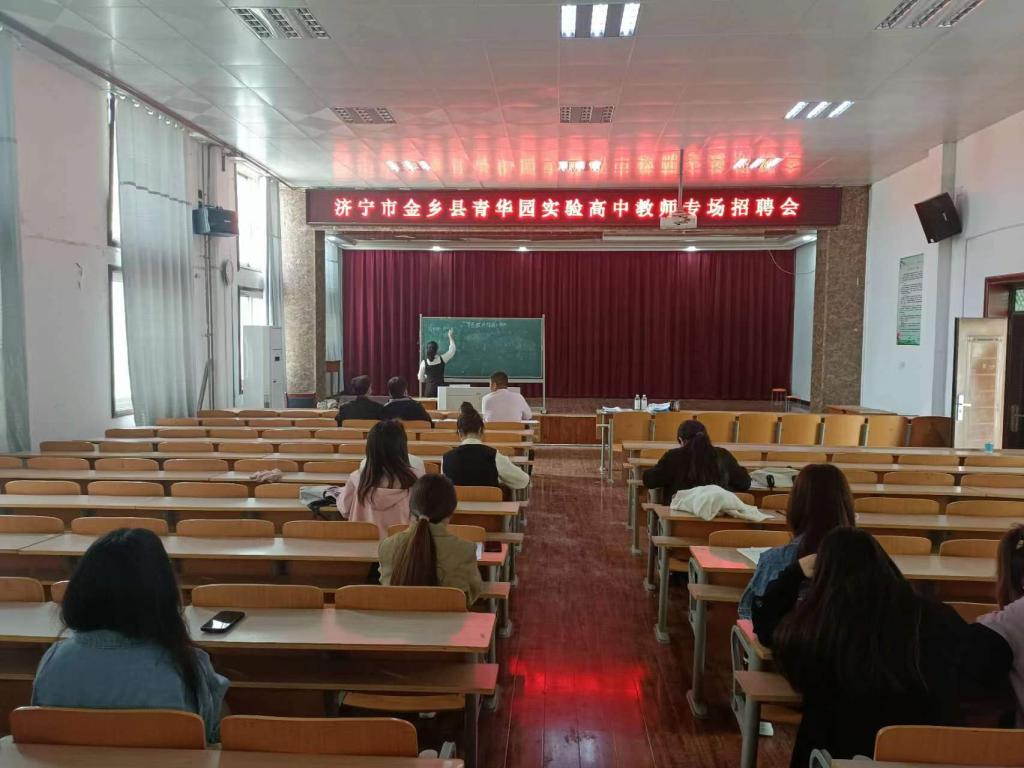 2023年4月11日上午,济宁金乡县青华园实验高中来我院进行专场招聘。金乡县青华园实验高中政教主任张雷一行四人来学院招聘生物科学专业毕业生。