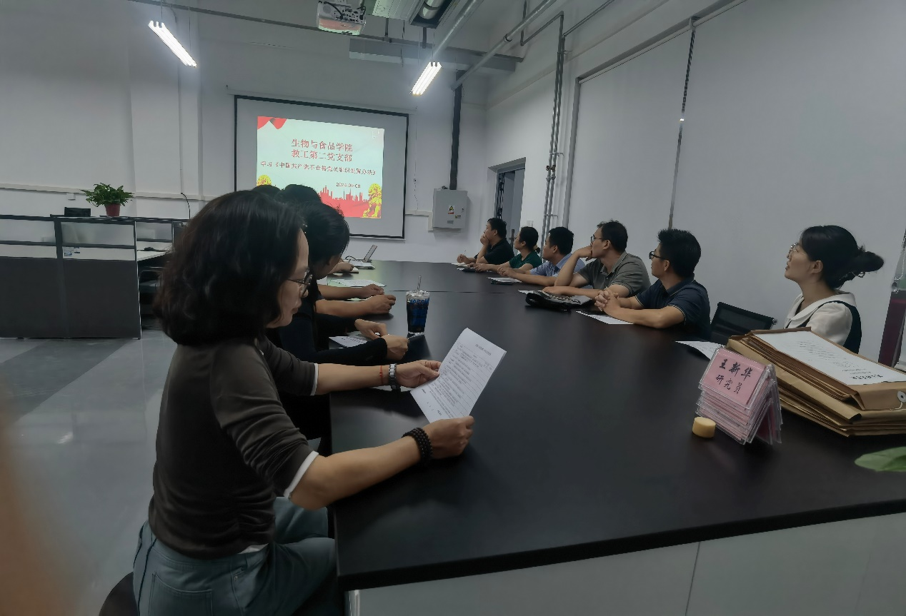 2024年9月6日,生物工程系在实训大楼103室召开《中国共产党不合格党员组织处置办法》学习会。这是生物工程系响应党中央号召,进一步提升教师党员政治素养和组织纪律的重要举措。本次学习会议由系主任邓丹丹主持。