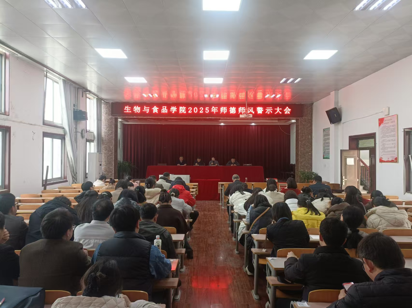 为加强和改进师德师风建设,进一步引导学院教职工树师德、正师风,营造风清气正的育人环境,2月28日下午,我院在报告厅召开2025年师德师风警示大会,院领导及全院教职工参会,会议由院党委副书记李杰主持。