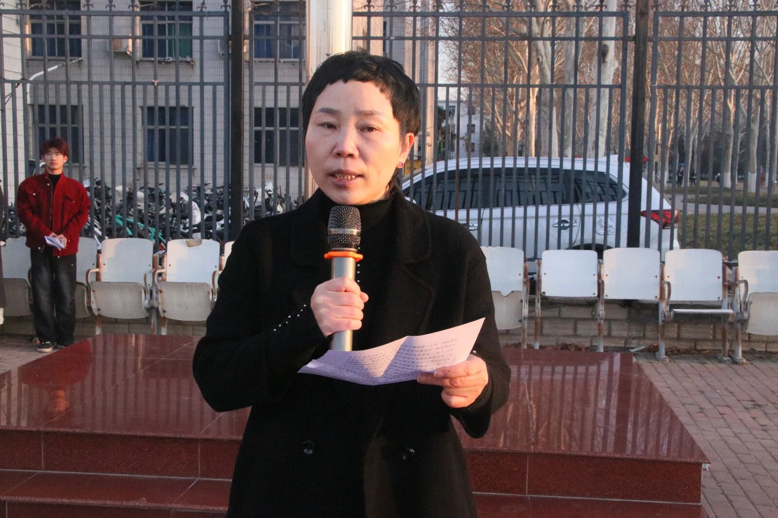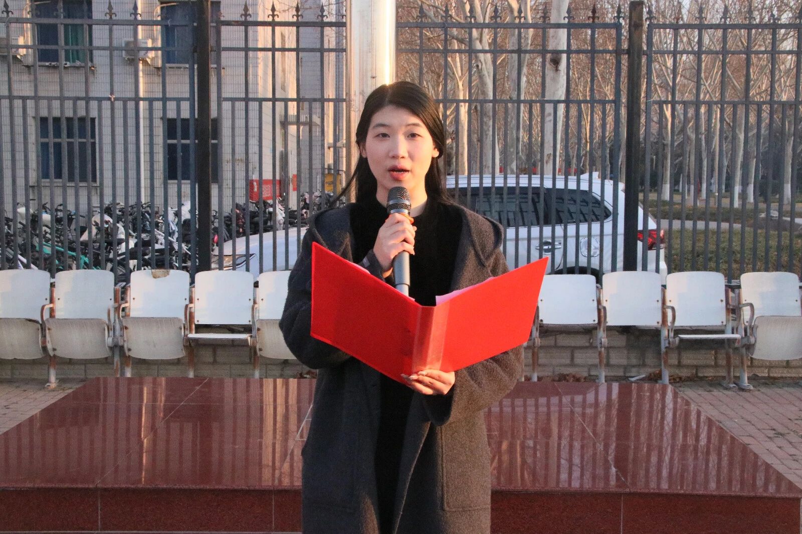 学生代表陈若涵进行国旗下演讲。呼吁同学们践行文明礼仪,提升个人修养,延续文化血脉。