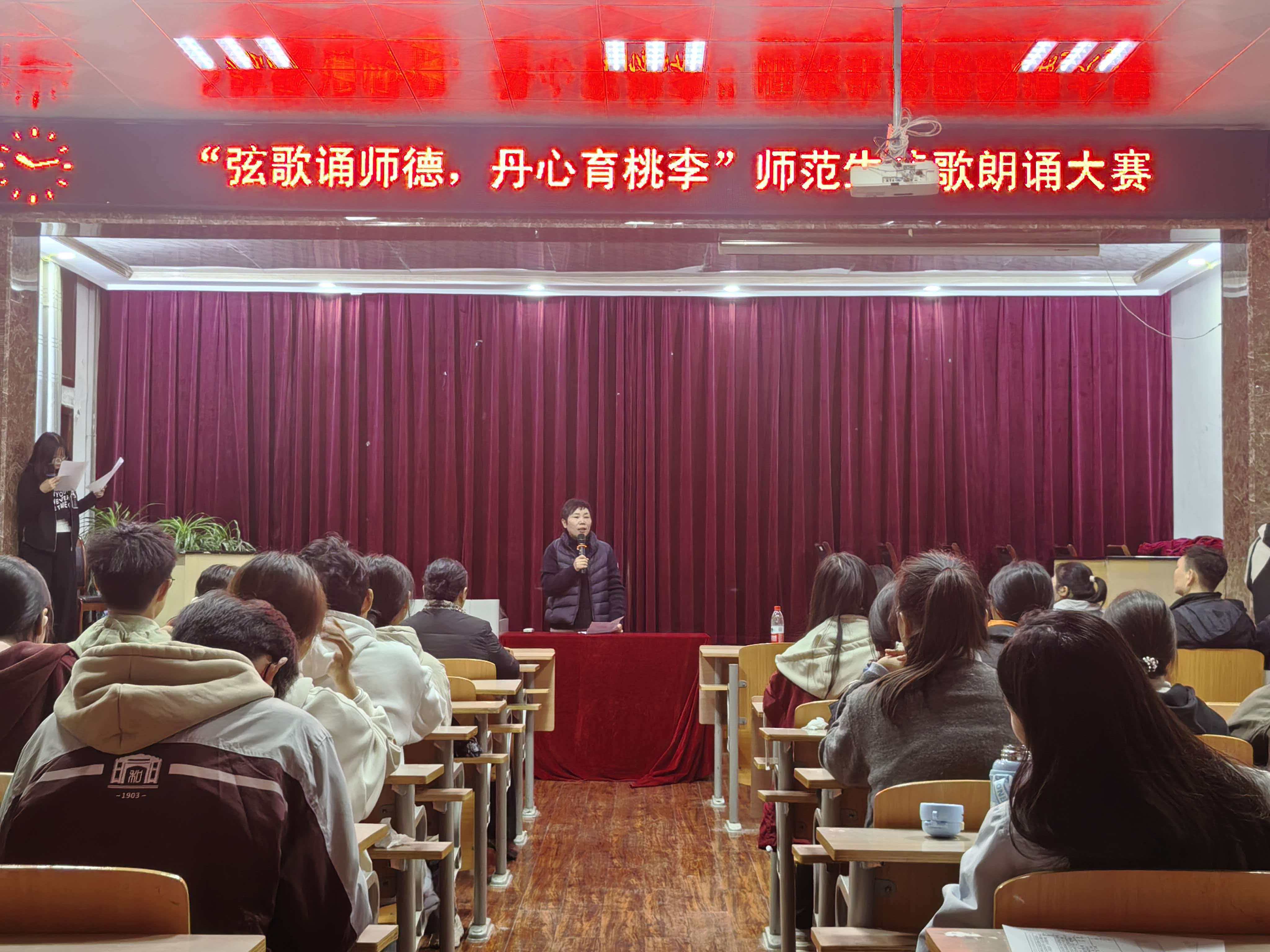 为顺应时代发展,弘扬高尚师德师风,抒发尊师重教情怀,11月11日晚,生物科学专业在我院报告厅举办了“未来智慧名师”系列活动之“弦歌颂师德,丹心育桃李”诗歌朗诵比赛。学院党委副书记李杰、丁波莉应邀出席,辅导员孟鑫明、班主任王志利、陈冠华、丁亚南和班助吕嘉婷担任评委。