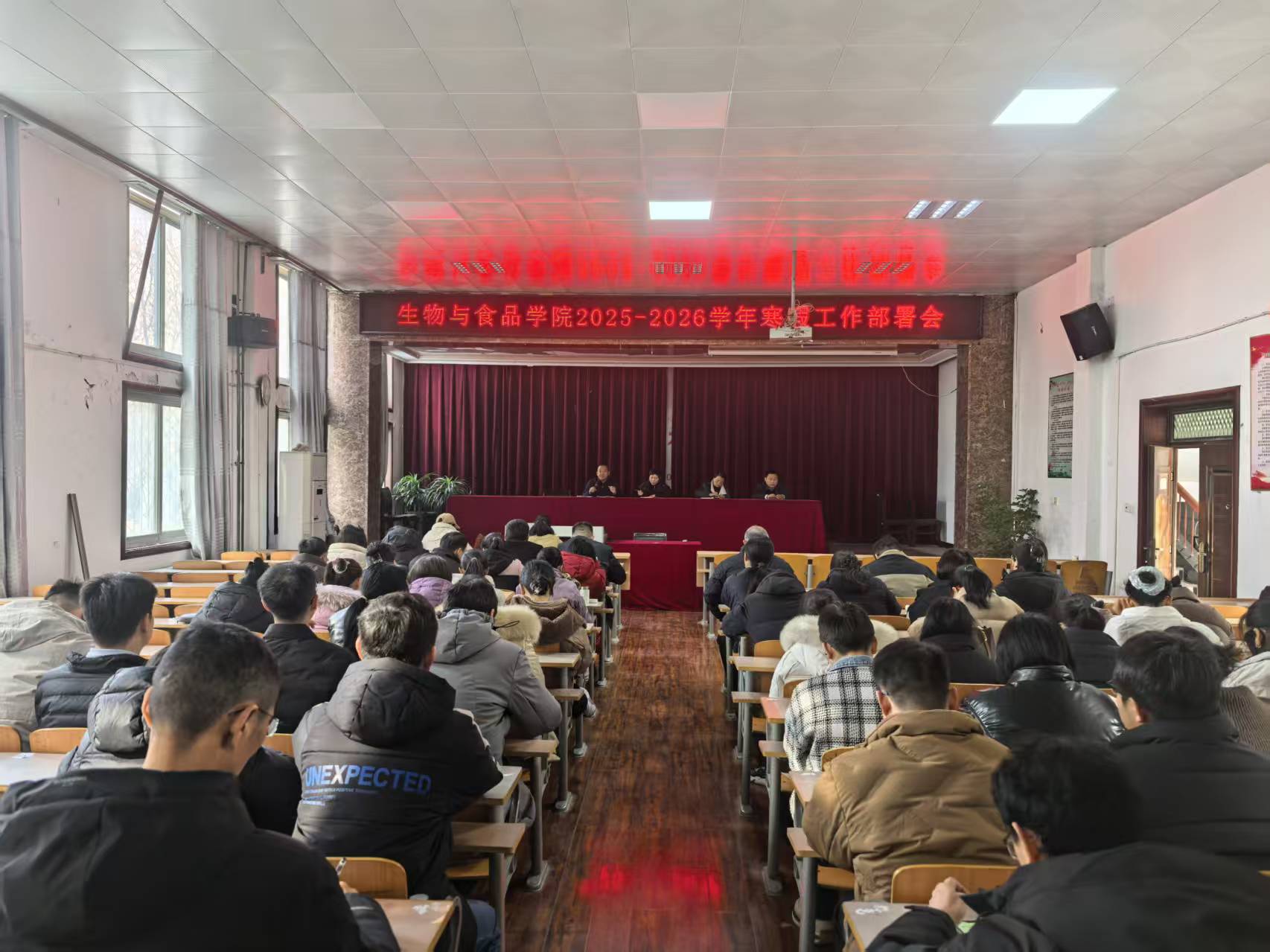 会上,就今年寒假工作进行安排部署。一是做好学校放假相关工作安排,要认真开展假期安全检查,尤其是实验室安全隐患排查和学生离校等工作;第二,严格落实假期值班值守;第三,开展寒假廉政提醒,锲而不舍落实中央八项规定精神;第四,要利用假期时间,落实工作任务,合理安排教学科研工作。第五,围绕学校目标定位,做好2026年工作谋划。