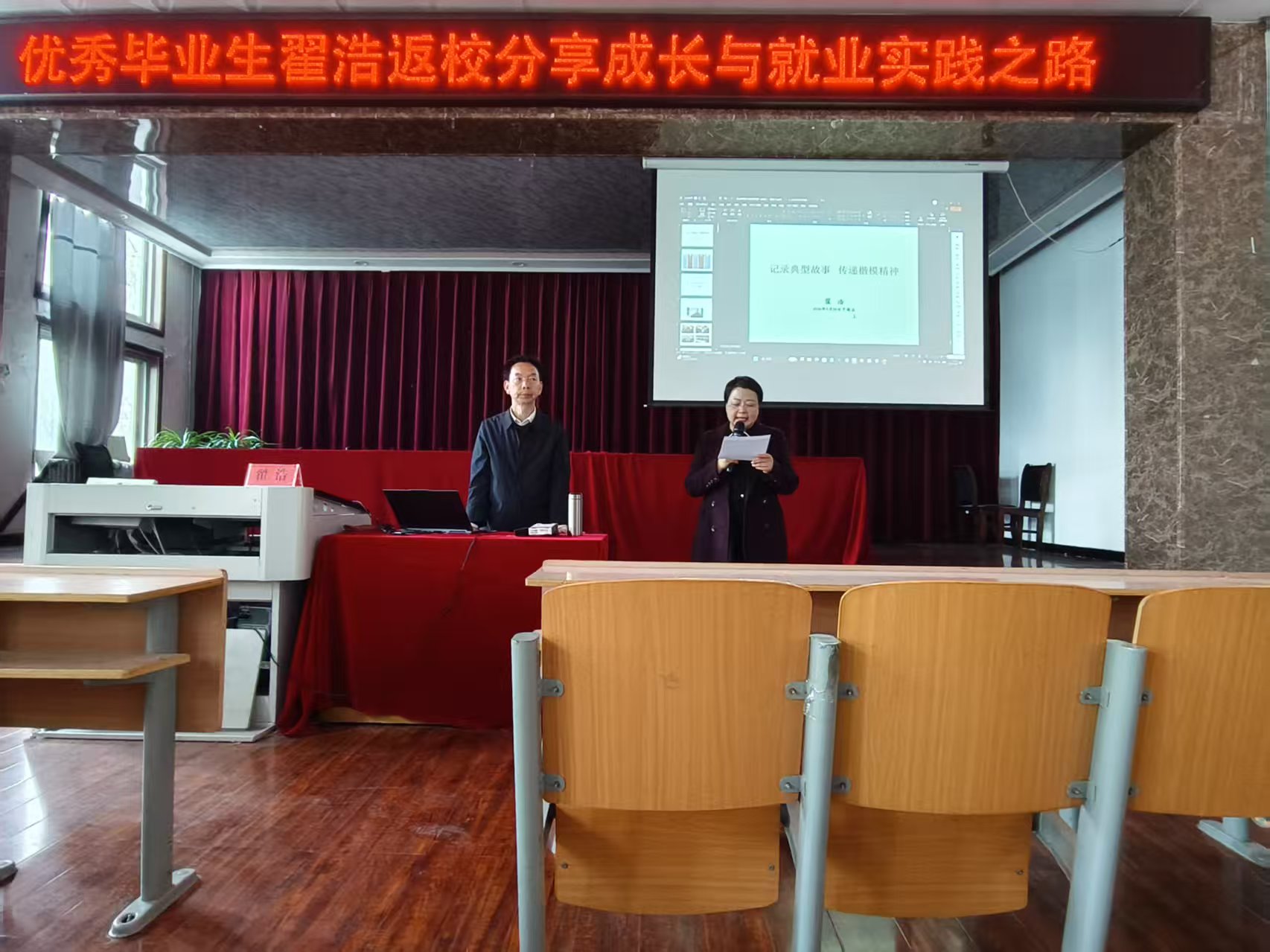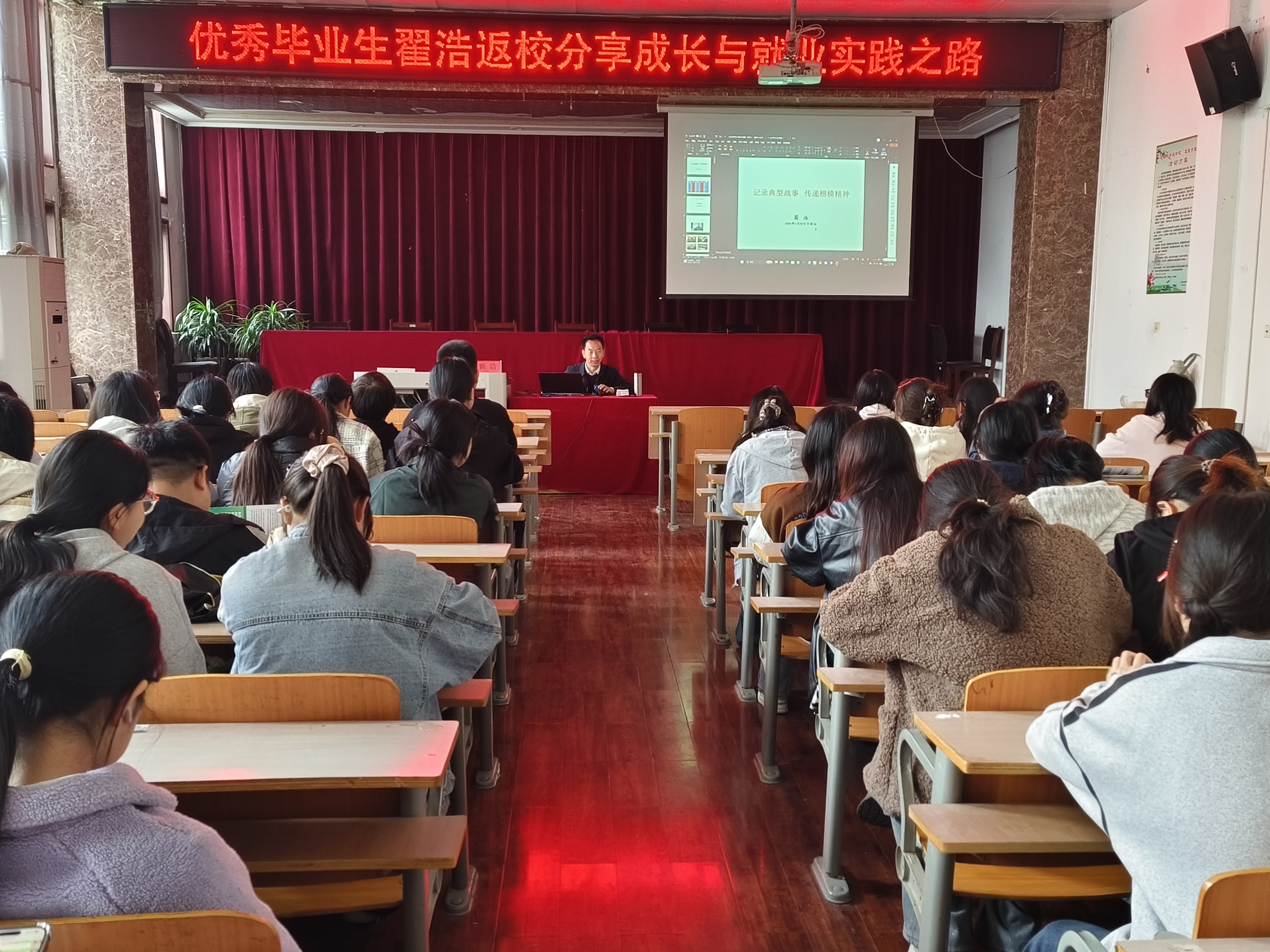 为充分发挥优秀校友的示范引领作用,引导学生树立正确成长观、择业观,4月1日,williamhill中文在报告厅举办“榜样领航启新程,双创赋能促成长”优秀毕业生翟浩返校分享成长与就业实践之路经验分享会。活动邀请了优秀校友翟浩返校分享。本次分享会由党委副书记丁波莉主持,各年级学生代表参与交流。