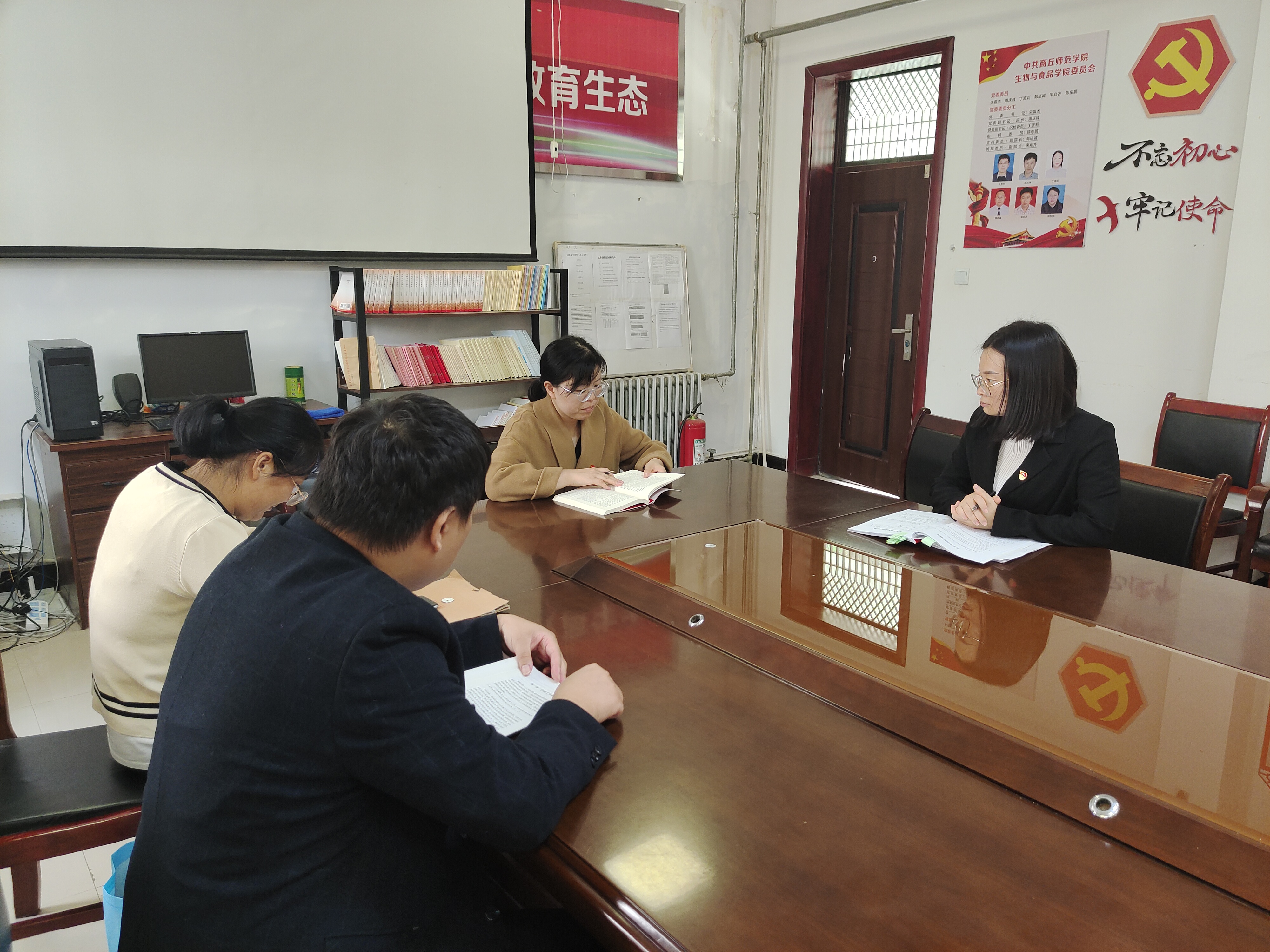 会议过程中,党支部书记邓丹丹介绍了教工第二党支部基本情况,并将党支部委员工作职责进行安排,党支部书记负责召开党员大会,检查党支部工作计划,按时向党支部委员会、党支部党员大会和上级党组织报告工作,定期召开党支部民主生活会。党支部组织委员要做好发展党员工作,做好党员管理工作,收缴党费,做好党员和党组织的统计工作。宣传统战委员负责组织党课学习,积极做好思想政治工作,围绕党支部中心任务做好宣传鼓动工作,并与组织委员积极配合,组织开展群众性的文化、科学、技术知识学习和体育活动。纪检委员负责党支部纪律检查,党风党纪监督工作。