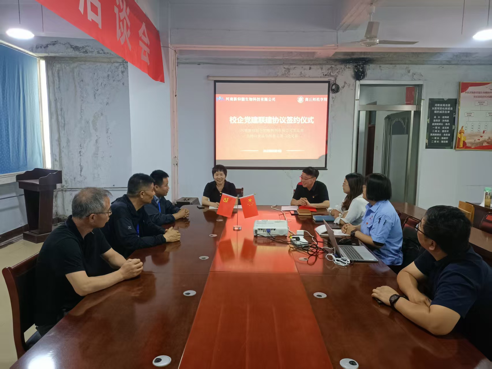 学院党委副书记李杰详细介绍了学院的办学历史、师资队伍、学科建设和人才培养等情况,并希望通过深化校企合作,将专业学习和业务实践相结合,开拓学生视野。河南新仰韶生物酶制剂有限公司党支部书记肖东坡介绍了公司的发展经营情况,就推进党建创新展开了深入讨论与交流。