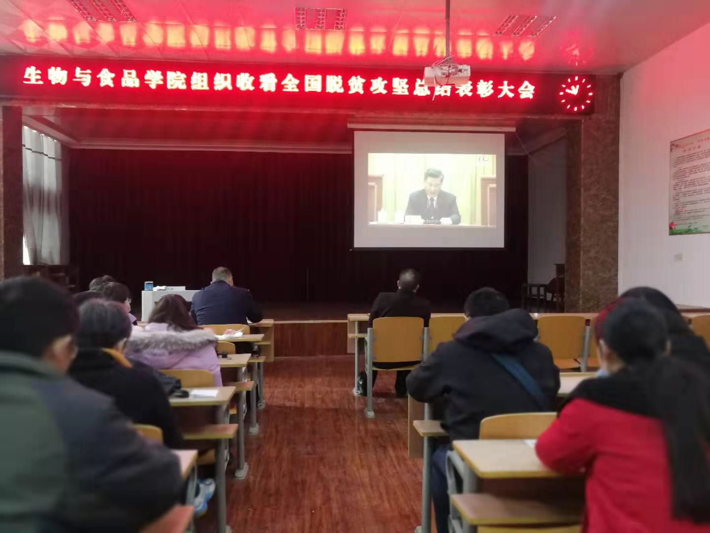 在做好疫情防控的前提下,学院组织全体职工在学院报告厅收看了大会实况直播。
