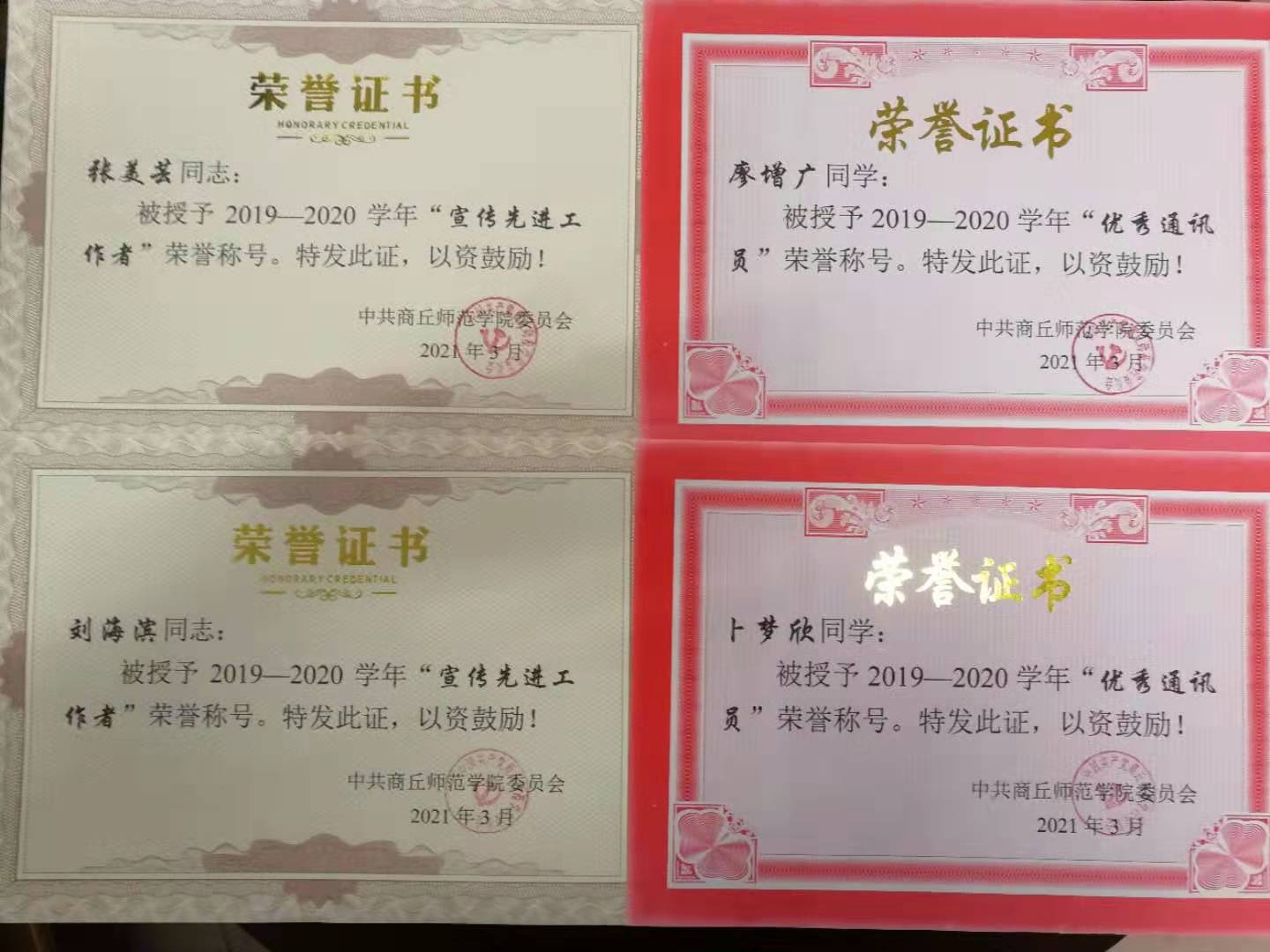 近日,学校党委下发《关于表彰2020年度十佳新媒体、宣传先进个人的表彰决定》,williamhill中文微信公众号被评为2020年度“十佳新媒体”荣誉称号;教师张美芸、刘海滨被评为“宣传先进工作者”荣誉称号;学生卜梦欣、廖增广被评为“优秀通讯员”荣誉称号。