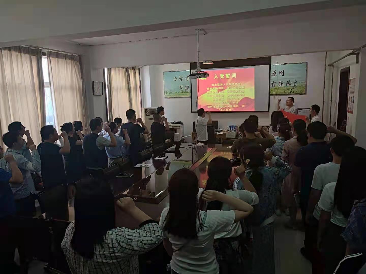 在庄严的《国际歌》声中,入党宣誓仪式正式开始。全体党员举起右手,面对党旗,在朱震杰带领下重温了入党誓词。