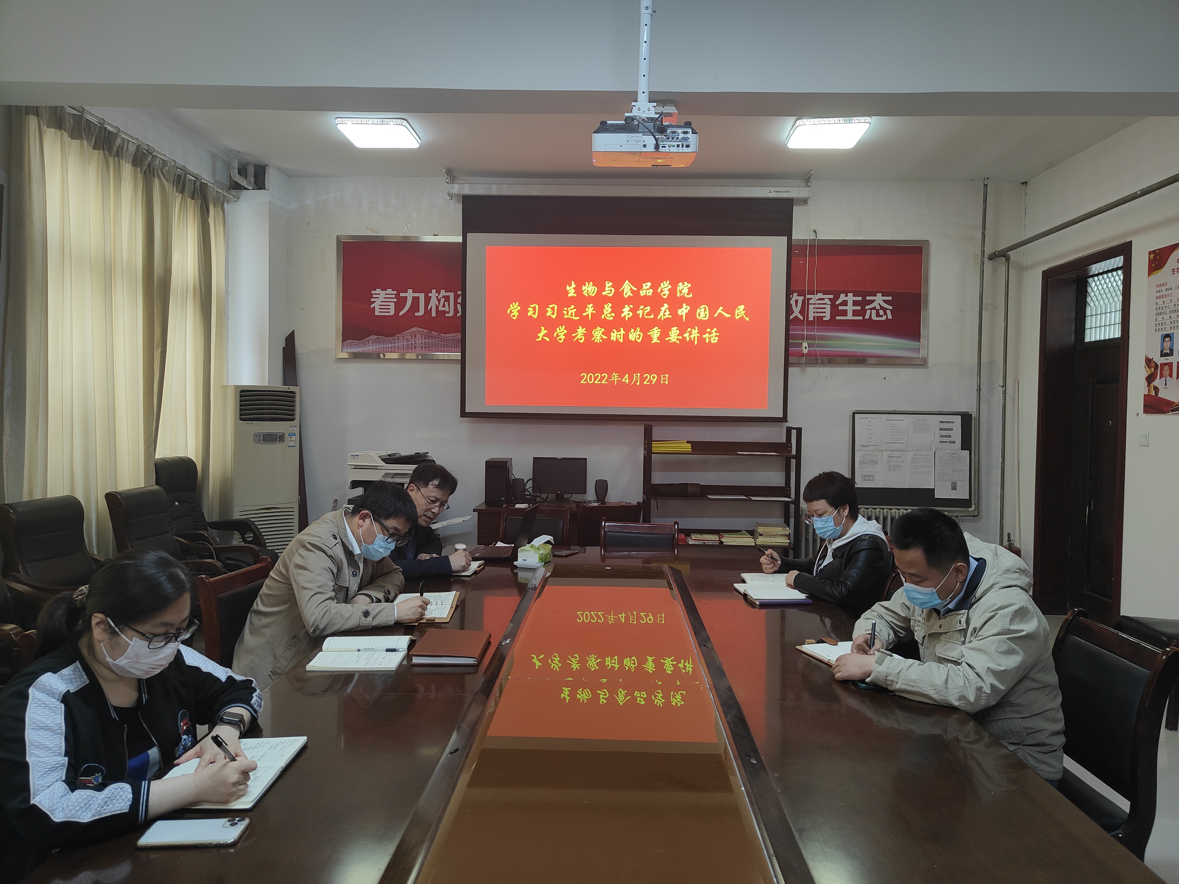 4月29日,williamhill中文党委组织召开政治理论学习会,专题学习传达习近平总书记考察中国人民大学重要讲话精神。全体院领导和行政人员在101会议室参加线下会议,其他教职工通过腾讯会议的方式参加线上会议。学习会由党委书记朱震杰主持。