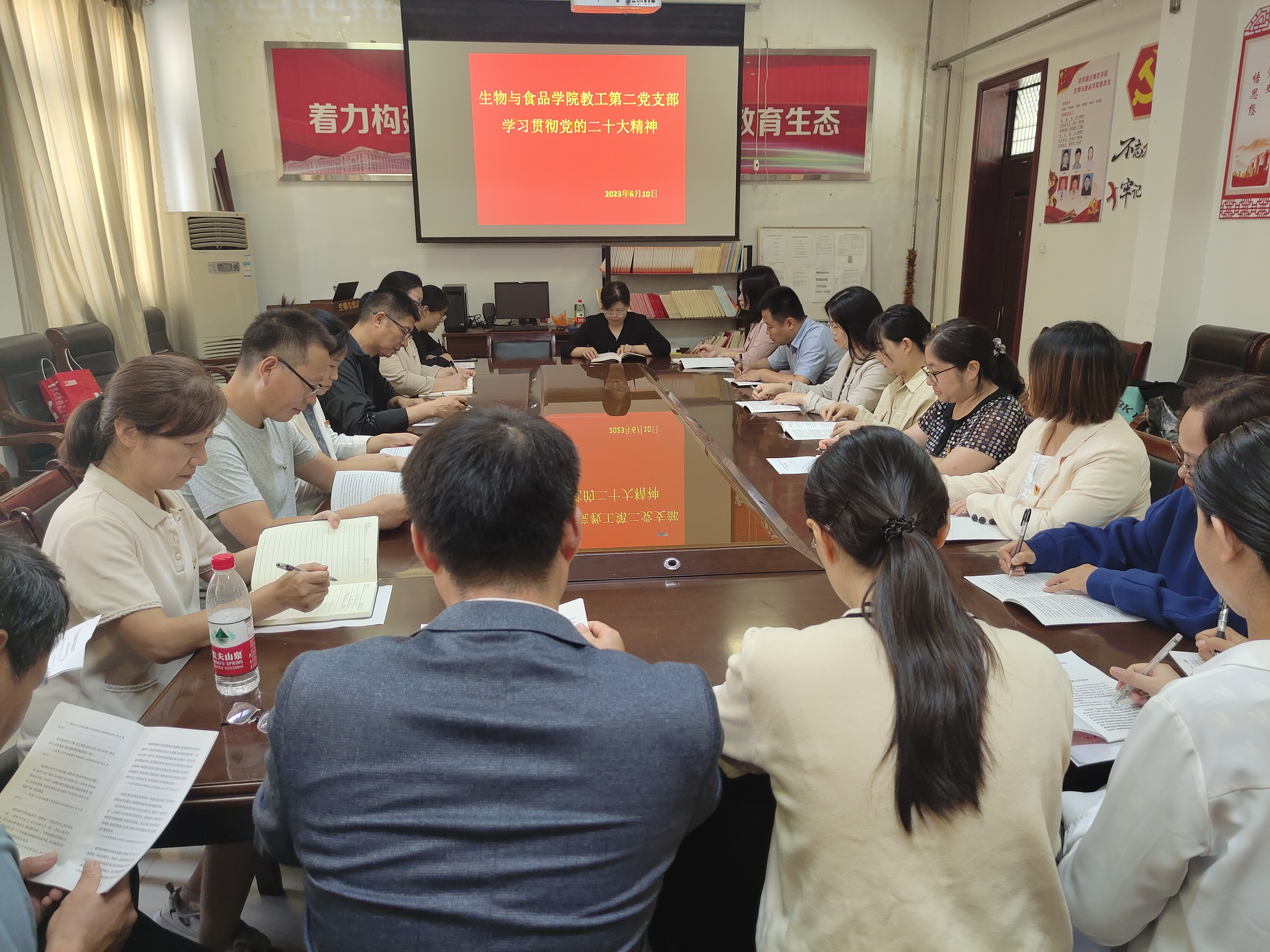 为加强党支部成员对党的二十大精神的学习和理解,将党的二十大精神内涵融入到今后的党建工作中,williamhill中文教工第二党支部与2023年6月10日在学院101会议室召开学习贯彻党的二十大精神主题会议,教工第二党支部全体党员参会,党支部书记邓丹丹主持本次会议。