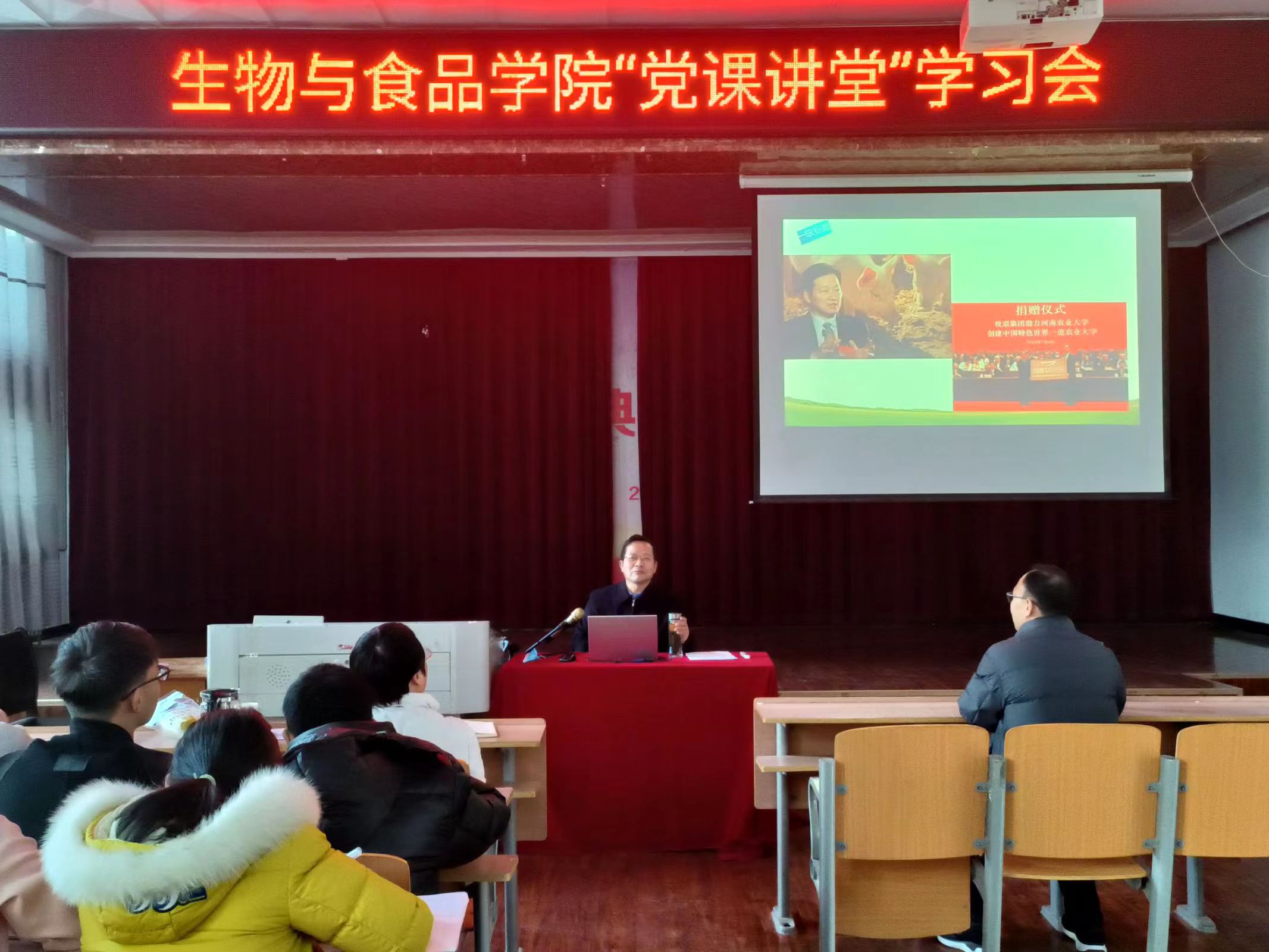 为深入学习贯彻党的二十大精神,切实发挥高校思政课主渠道、主阵地作用,12月8号,副校长程功鹏以“开辟马克思主义中国化时代化新境界”为题,在williamhill中文报告厅为动物科学系学生讲授了专题思政课。