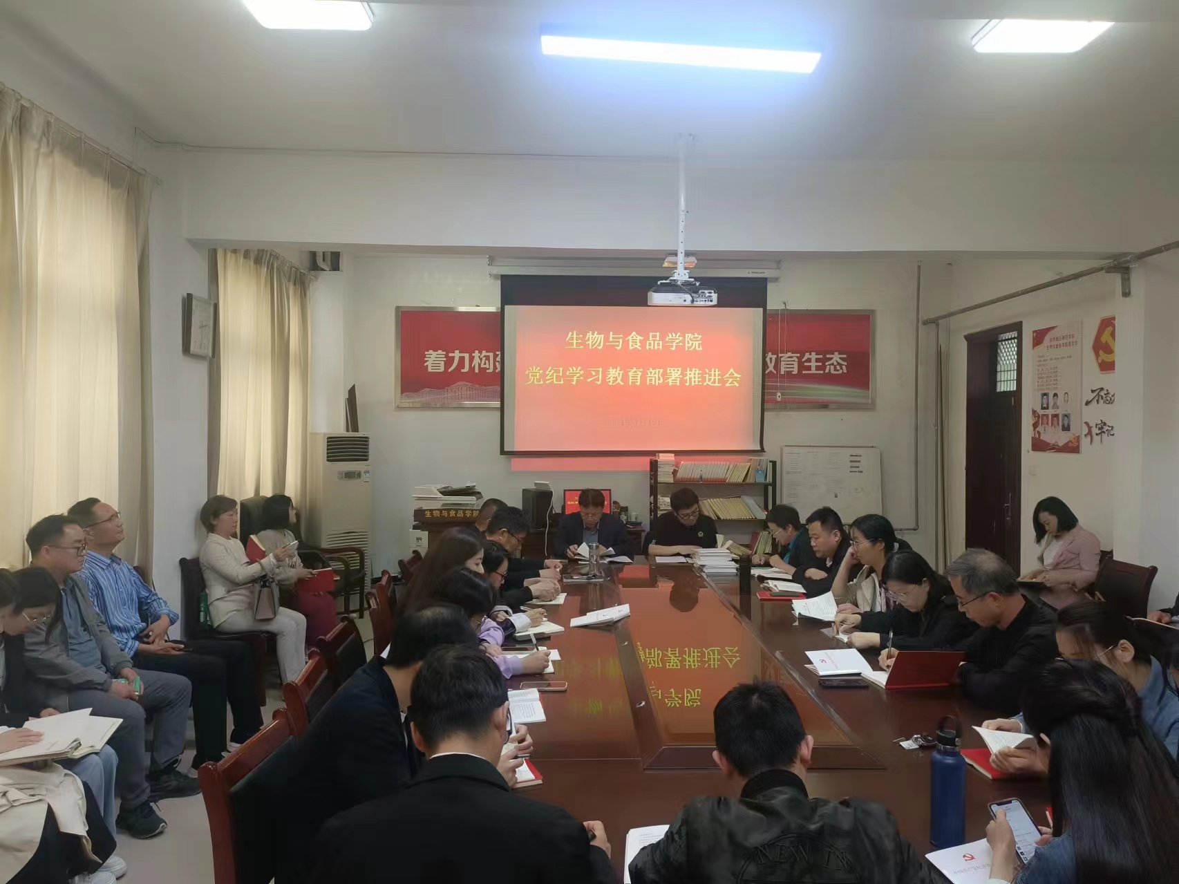 为认真贯彻落实党中央部署和省委、校党委的要求,研究部署williamhill中文党纪学习教育工作,4月19日下午,学院在101会议室召开党纪学习教育部署推进会,学院全体师生党员参会,会议由学院党委书记朱震杰主持。
