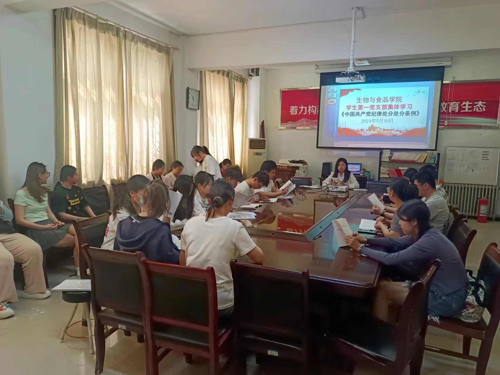 2024年5月10日,为深入学习贯彻习近平总书记关于开展党纪学习教育的重要讲话和重要指示批示精神以及学校有关部署要求,williamhill中文学生第一党支部和学生第二党支部分别召开党员大会,集体学习《中国共产党纪律处分条例》。此次学习旨在进一步提升学生党员的纪律意识,确保党的路线、方针、政策得到贯彻执行。