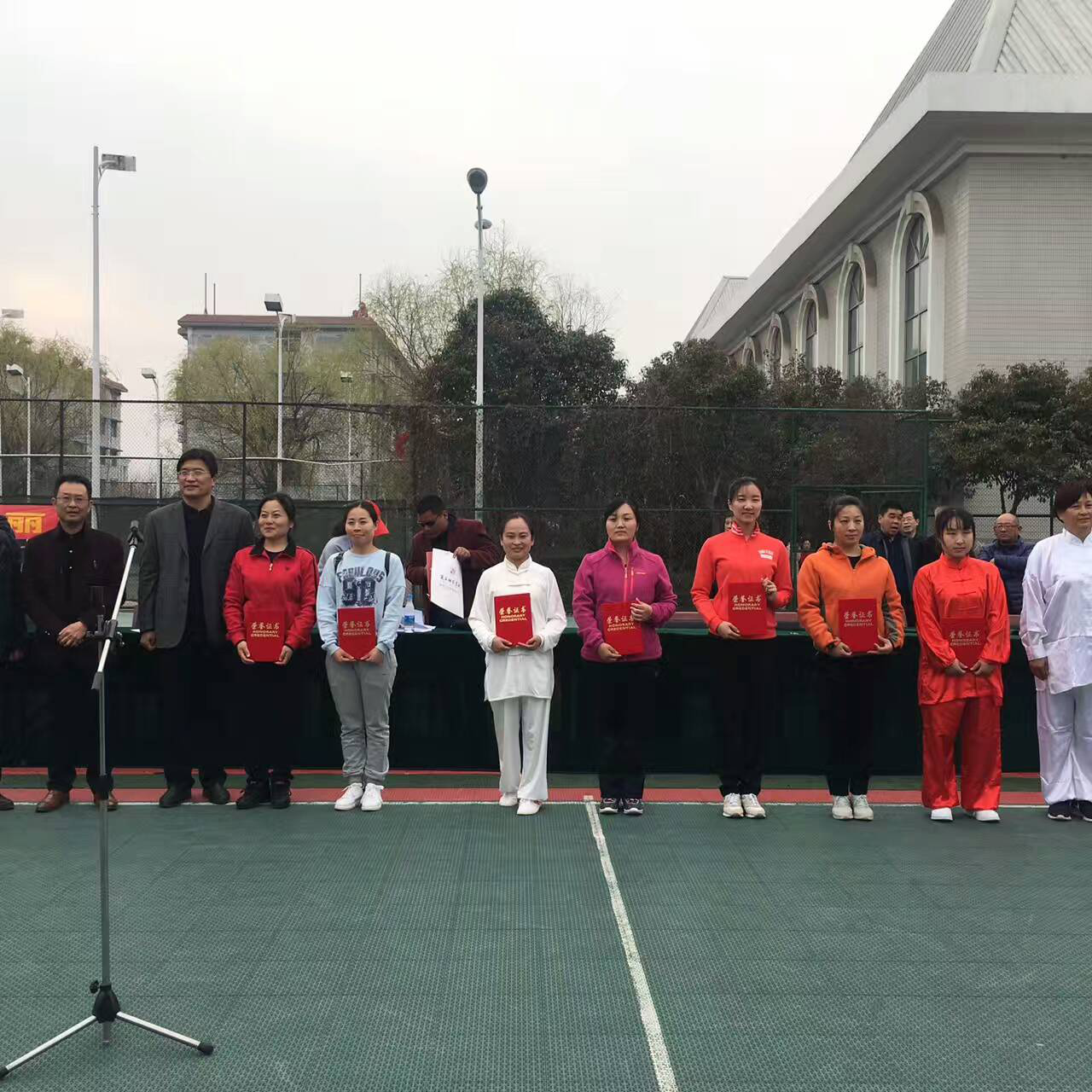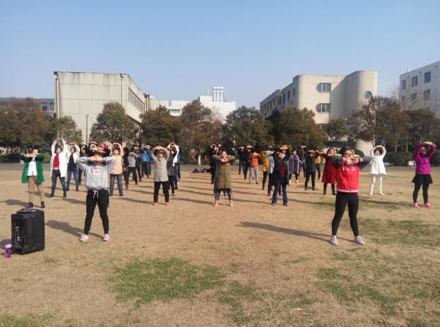 为深入贯彻落实《全民健身条例》,为了让教职工掌握一项终身健身的体育项目,为了庆祝“三八节”到来,3月10日下午,在我校平原路校区篮球场内举行了由我校工会主办,体育学院承办的庆祝“三八”国际劳动妇女节教职工健身气功八段锦比赛。本次活动共有23个分会,500多名教职工参赛,比赛通过抽签分成了A、B、C、D四个大组,每个大组6个分会进行同时比赛。校工会主席朱伟致开幕词,他首先向学校全体女教师致以节日的问候,充分肯定了女教职工在工作中严谨的态度和为教育事业奉献自身的精神,学校涌现出了一批爱岗敬业、团结务实、无私奉献的优秀个人,以自尊、自爱、自强、自立的精神风貌为学校转型发展展示着自己的聪明才干;同时也指出女教工还要兼顾家庭,孝敬老人,培养孩子,所以女同志才是最辛苦劳累的人。他对女教工提出了“强身健体展风采,休养身心促发展”的希望,在今后的工作中,继续立足本职岗位,加强自身的文化知识学习,做适应新形势的新女性。