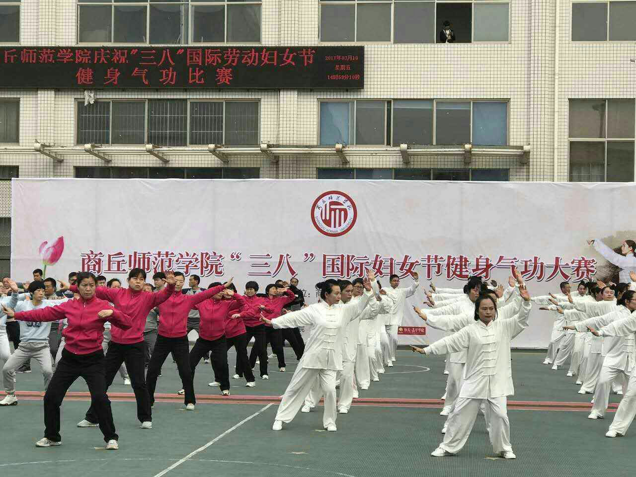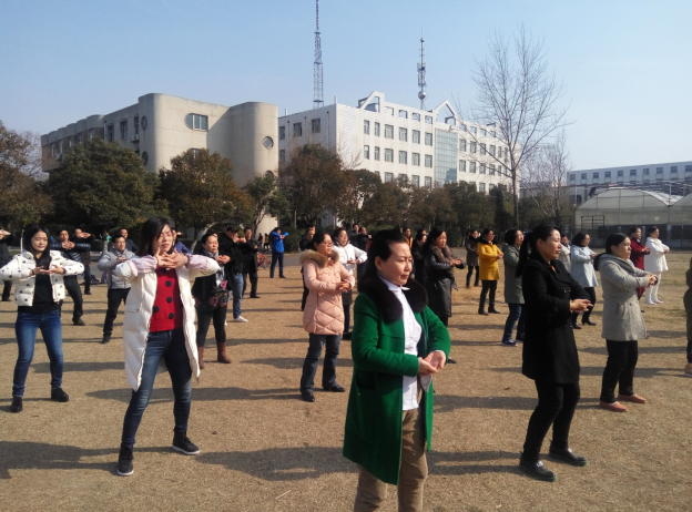 全体教职工在文化路操场展示了“八段锦”气功,大家精神饱满,整齐划一,引来阵阵掌声。大家在轻松欢快的气氛中度过了令人难忘的妇女节。