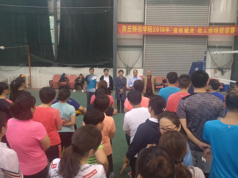 为丰富教职员工课余文化生活,提高教师综合素质能力,陶冶教师高雅情趣,激发教师参与排球活动的积极性,我校教工排球俱乐部经过精心组织,于10月12日成功举行了“金秋健身”教工排球联谊比赛活动。校工会副主席刘风亭,校教工羽毛球协会主席左秀会、足球俱乐部主席张鸿韬、商丘市誉荣驾校校长李阳和排球俱乐部主席史继红出席了本次比赛活动,活动开幕式由史继红主持。