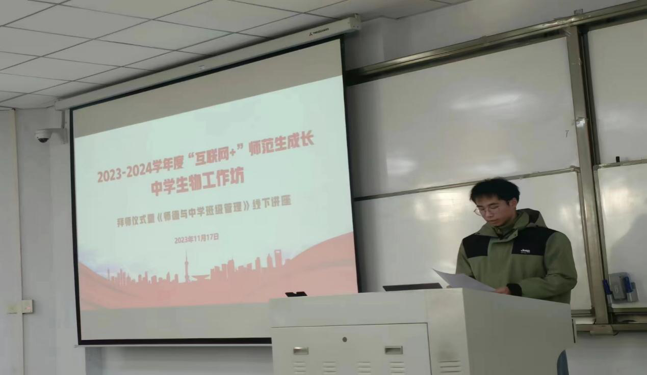 11月17日,在1号教学楼207教室,williamhill中文成功举办了2023-2024学年度“互联网+”师范生成长中学生物工作坊拜师仪式暨《师德与中学班级管理》线下讲座。出席仪式的有商丘市教体局基础教研室教研员张静和许洁老师、中学生物工作坊坊主商丘市第一高级中学的孟志强和汪俊芳、商丘市第二高级中学的李金和商丘市回民高级中学的韩双旭等老师,生物科学专业2021级学生坊员也参加了此次活动,活动由汪俊芳老师主持。
