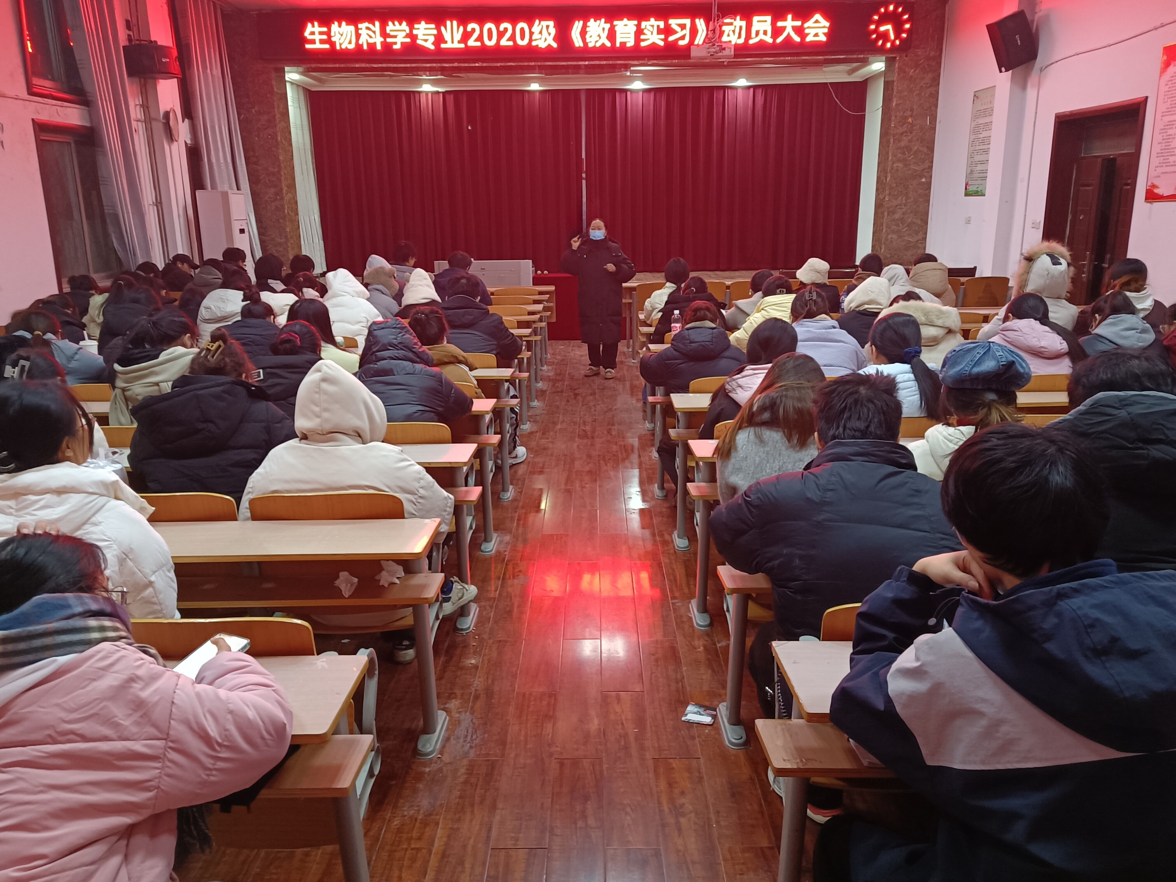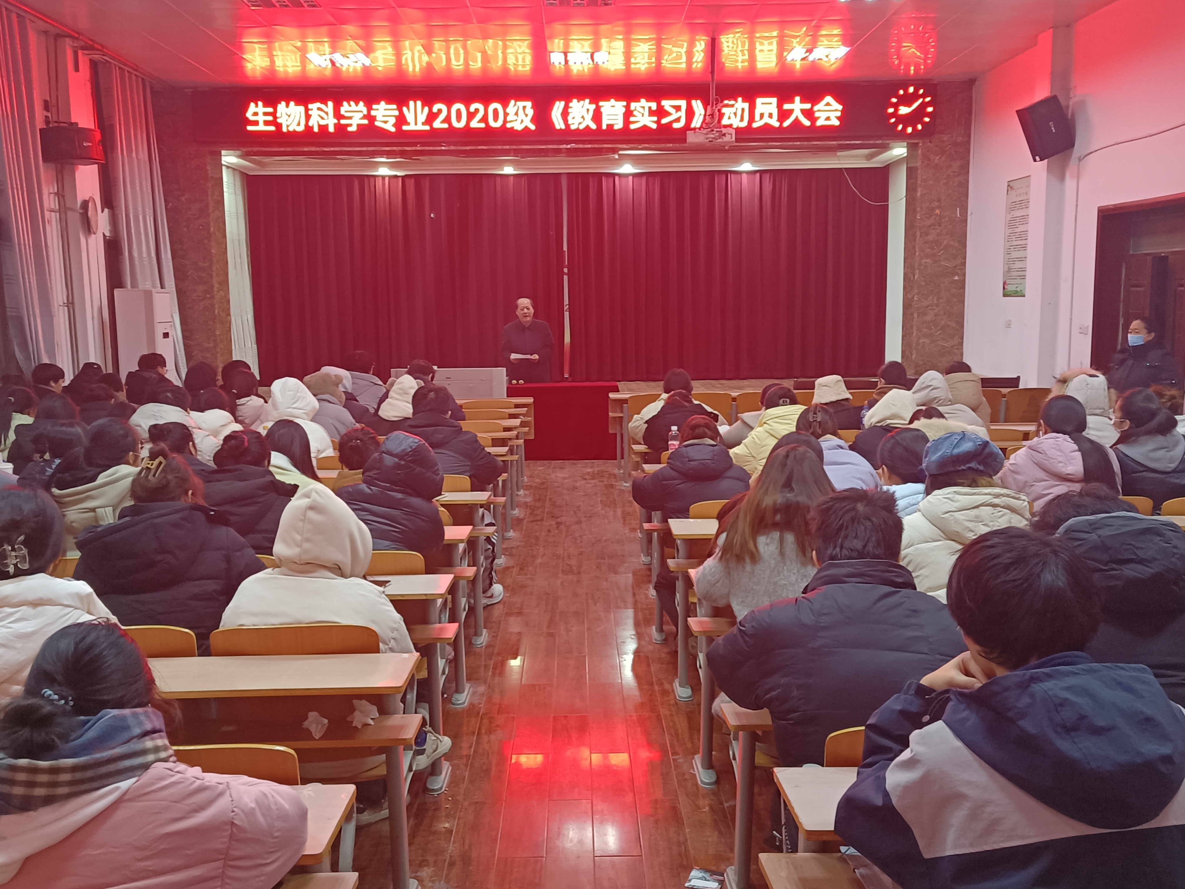 2023年12月24日下午,生物科学系召开了生物科学专业2020级教育实习动员大会,参会的有生物科学专业12名校内指导教师和2020级全体学生,会议由系主任郑爱珍主持。