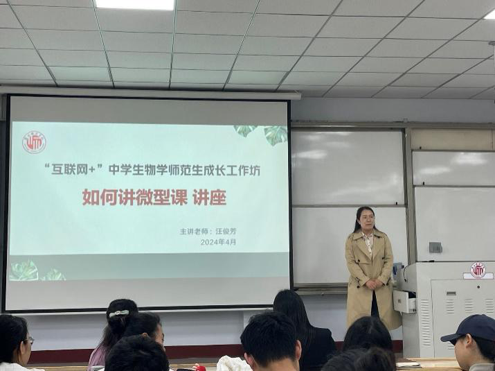 4月12日下午,在1号教学楼308教室,生物科学系成功举办了生物科学专业2021级“互联网+”师范生成长中学生物工作坊专题讲座——如何讲微型课。出席活动的有商丘市教体局基础教研室教研员许洁、中学生物工作坊坊主商丘市第一高级中学孟志强和汪俊芳老师、商丘市第二高级中学李金老师和商丘市回民高级中学的韩双旭等老师,生物科学专业2021级学生坊员全部参加了此次活动,活动由许洁老师主持。