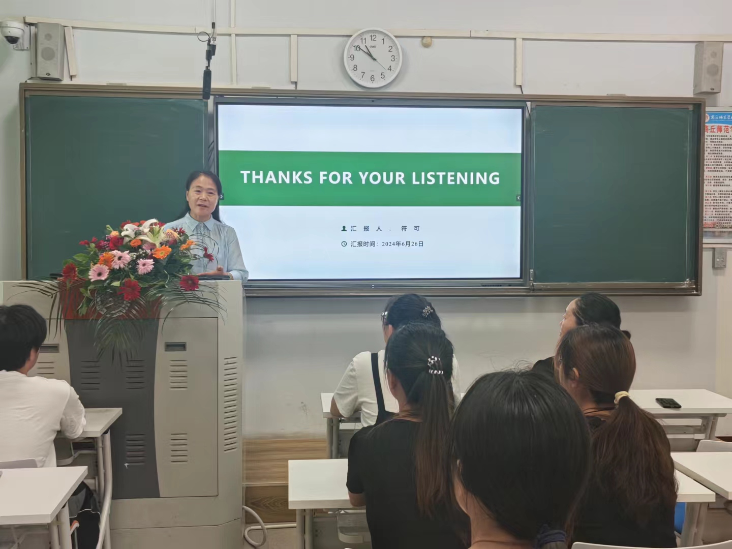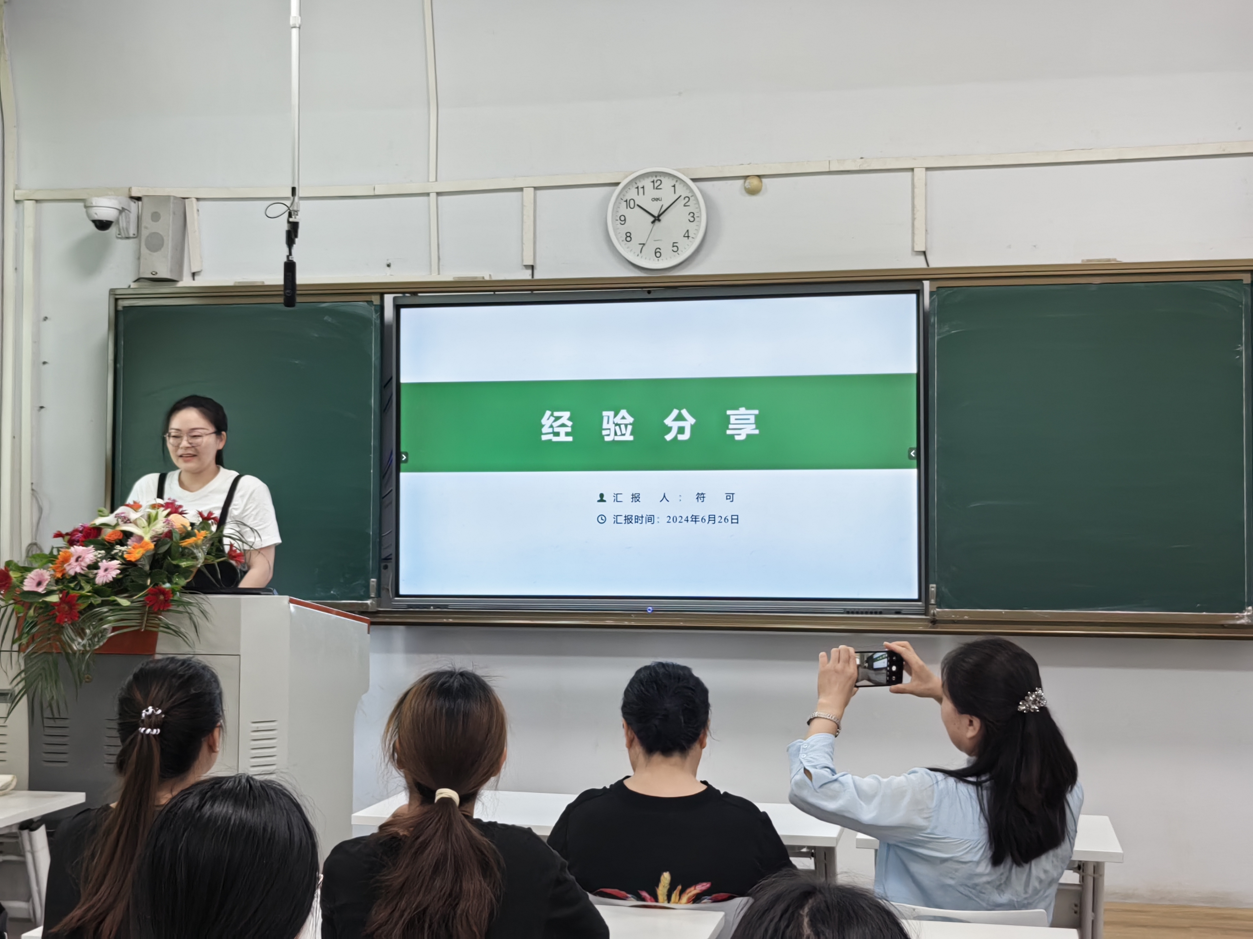 6月26日,生物科学专业2021届毕业生符可荣归母校,与学弟学妹们分享学业经验。生物科学系主任郑爱珍参加本次会议,生物科学23-1班班主任徐亚军组织指导,生物科学23-1班同学积极参与。