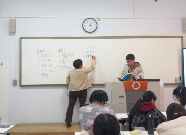依据“线上知识学习,线下能力提升”的课堂改革的教学理念,王玉玲老师建构了线上线下互补的课堂教学模式。首先,具体流程是:提前一周,通过学习通发布学习任务,要求学生提前在线上学习本章课程内容的教学视频、课件,并完成作业。要求学生把线上学习时遇到的问题记录下来,在线下课堂上进行解决。其次,通过线上线下内容衔接,重难点进一步强调,并解答了学生遇到的问题;接下来,老师再针对学习内容提出问题,让学生分组讨论,讨论结束后再让小组派代表总结发言,其它小组讨论补充,这种学生之间的互动和交流模式激发了学生的学习热情和主动参与意识,使学生所学知识在这里得以巩固和提升。最后,教师点评总结,完成新课内容的讲解。