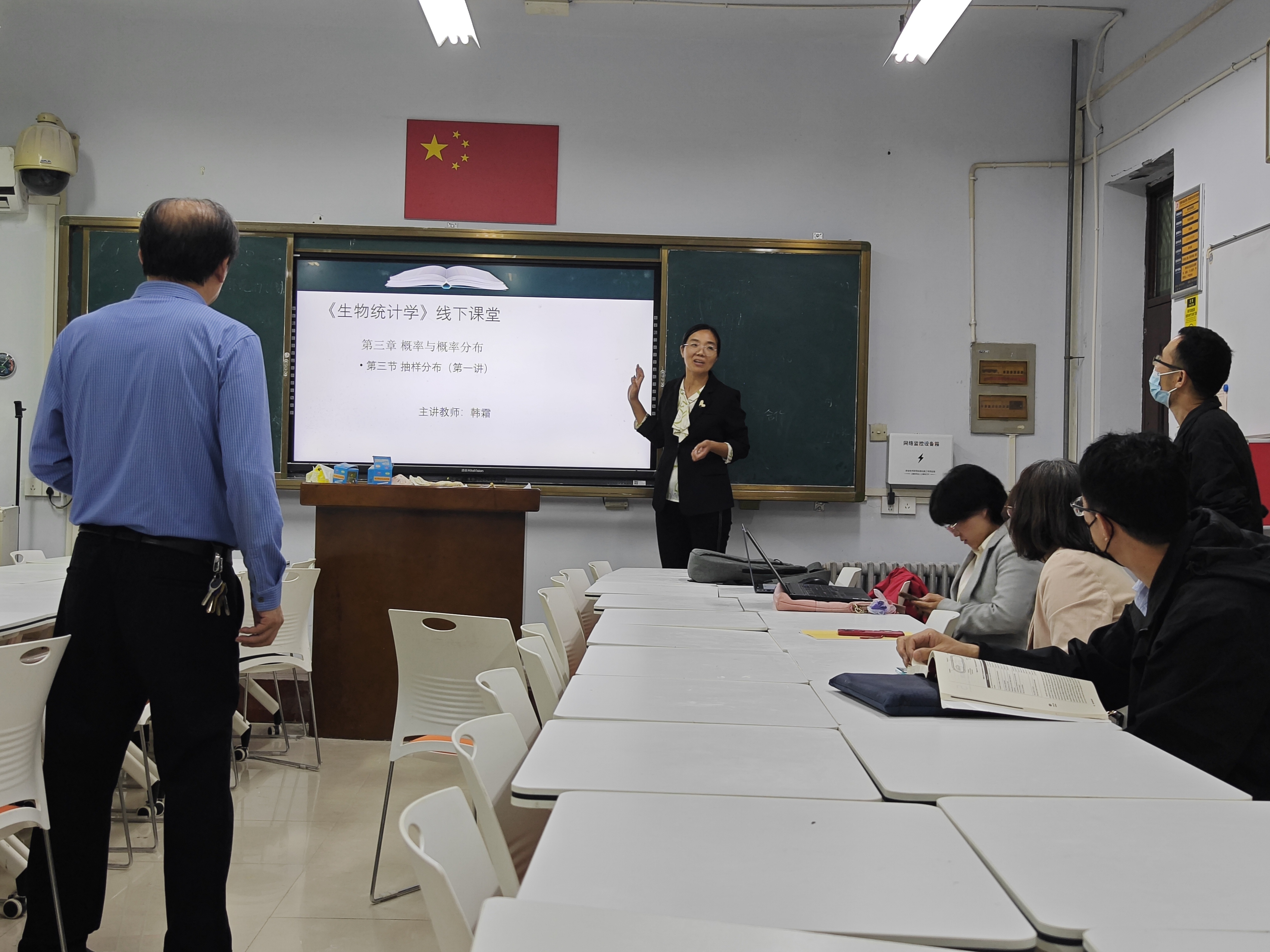 学科带头人、中原名师刘福林教授和其他同行教师进行了观摩,从课程目标要求、教学内容设计、教学技能运用、教学基本功展示、思政元素融入等多方面给予了点评和个性化指导,体现了教学展示—同行议课—专家点评—反思整改的教研特点。