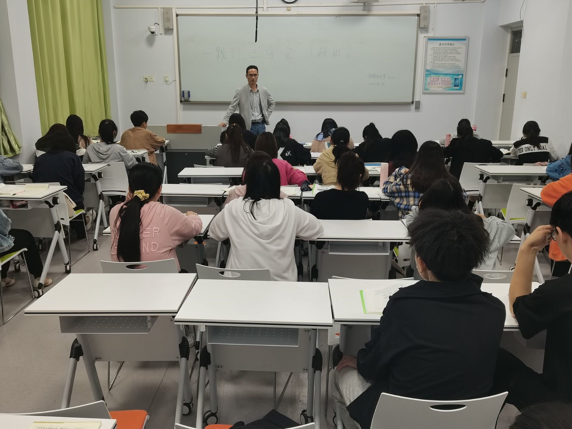 为进一步提升学生对生物科学师范专业认证重要性的认识,2021年4月15日晚上,williamhill中文生物科学20-2班在1号楼312教室开展了“一践行,三学会”深入学习主题班会,班主任老师张庆琛主持。