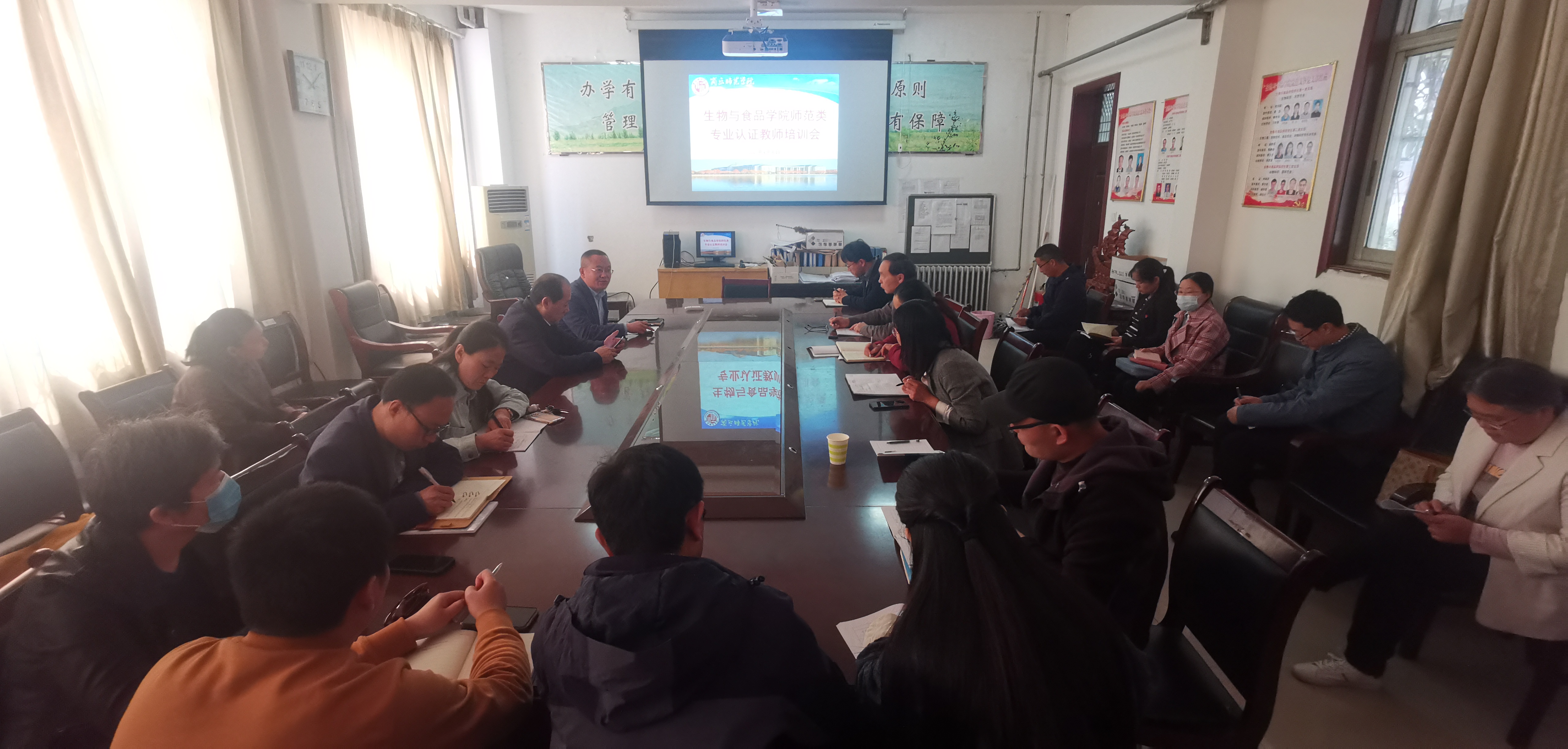 4月30日上午,生物科学系组织全体教师参加2021年师范类专业认证新政策与新要求培训会。williamhill中文院长周庆峰、副院长韩进诚,学院各专业负责人参加本次培训。