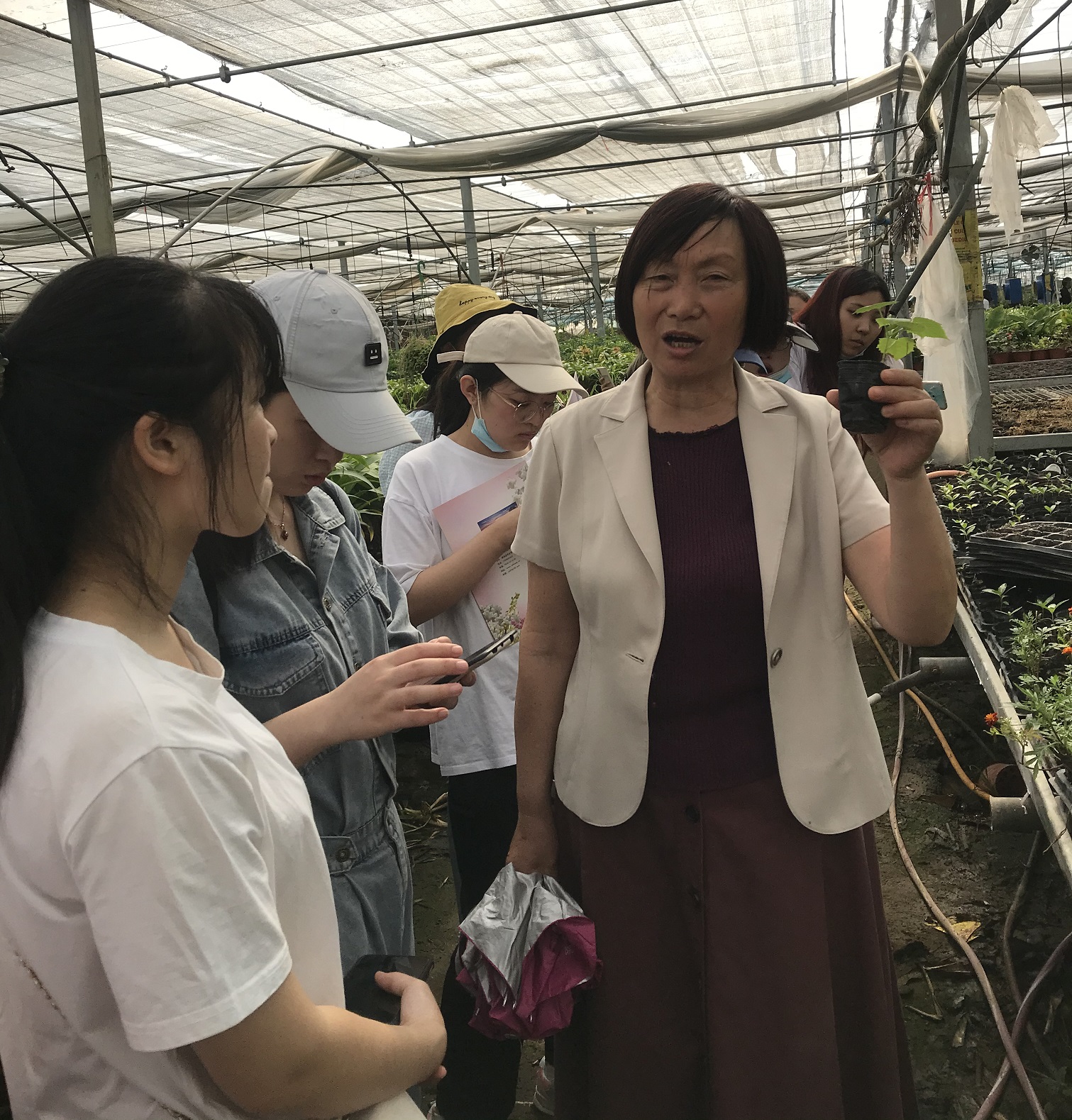 随后李经理带领同学们参观了公司的种植基地,讲解了花卉的相关知识。经过学习,同学们对花卉的种植、养护等有了更直接和深入的认知,并了解了有关园艺行业的经营模式。