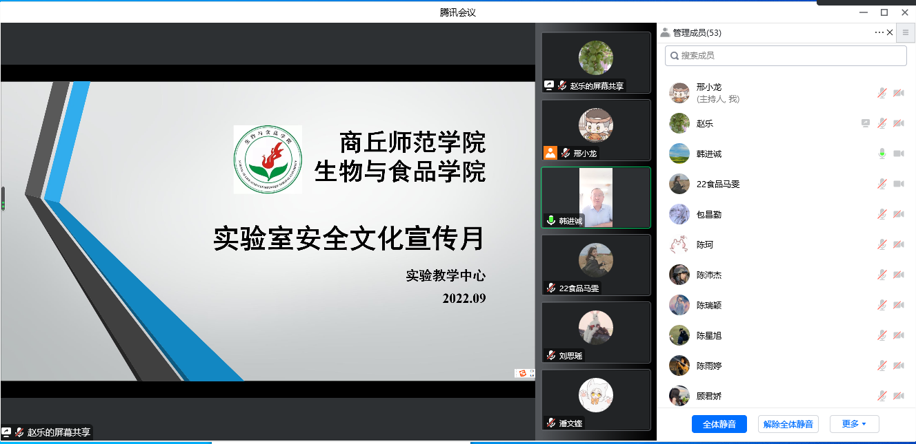 韩进诚院长在着重强调了生物实验室的准入制度、宣布了williamhill中文实验室安全文化宣传月的开展计划,并对实验室安全考试和实验室安全竞赛做了动员。各位培训老师就实验室水电试剂等基础安全和登记制度作出了详细讲解,并强调了MSDS数据库的重要性。为2022级新生介绍并强调了williamhill中文实验室安全题库的重要性,并宣布了实验室安全题库进入实验课考试计入分数的决定。