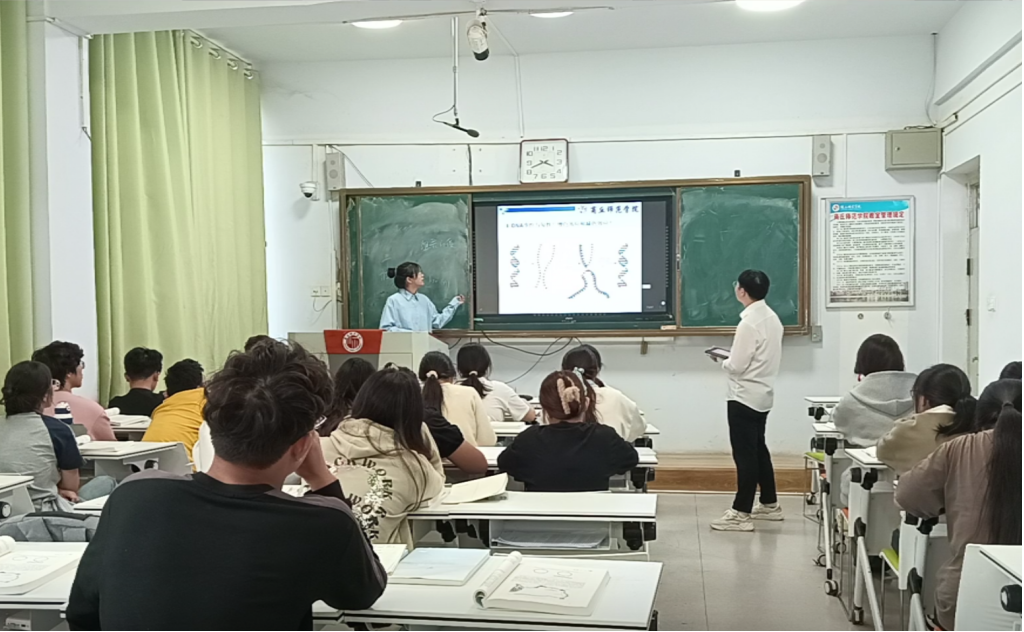 2024年10月17日下午,动物科学专业张辽老师在睢阳校区1号教学楼306教室举行了《动物生物化学》线上线下相结合混合式教学公开课。在公开课前,老师预先在学习通上投放了学习视频,利用雨课堂发布自学PPT课件,并对同学们分成7个小组,根据本章主要学习内容布置了不同的小组讨论题目,将题目按思维导图进行总结。