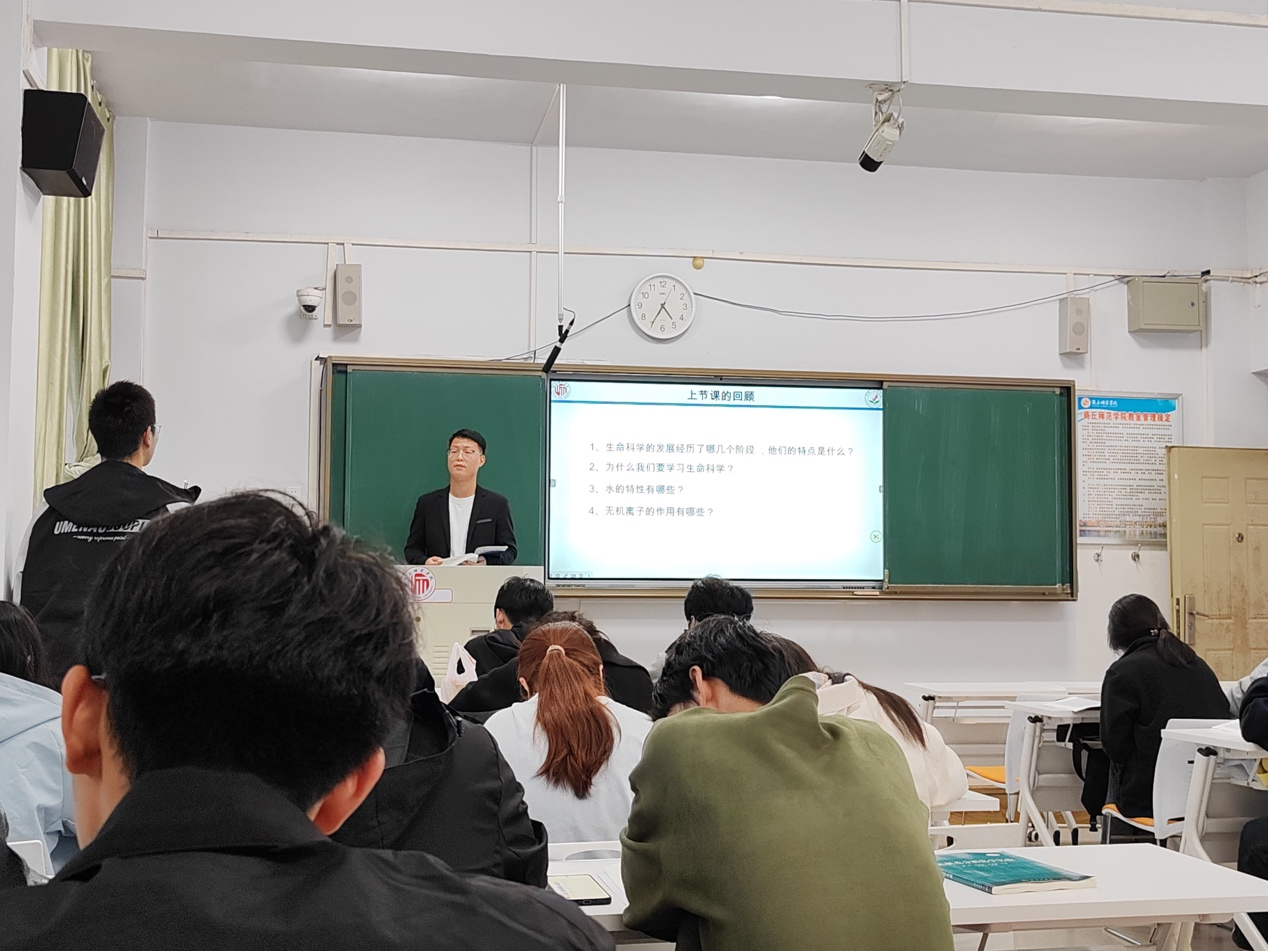 2025年10月16日第7节,生物科学专业朱文俊老师在睢阳校区1号教学楼411教室开展了《生命科学发展史》课程教学公开课。williamhill中文副院长宋兆齐、生物科学系主任郑爱珍、李芮芮、刘梦洁、王志利、李微等多位教师到场观摩。