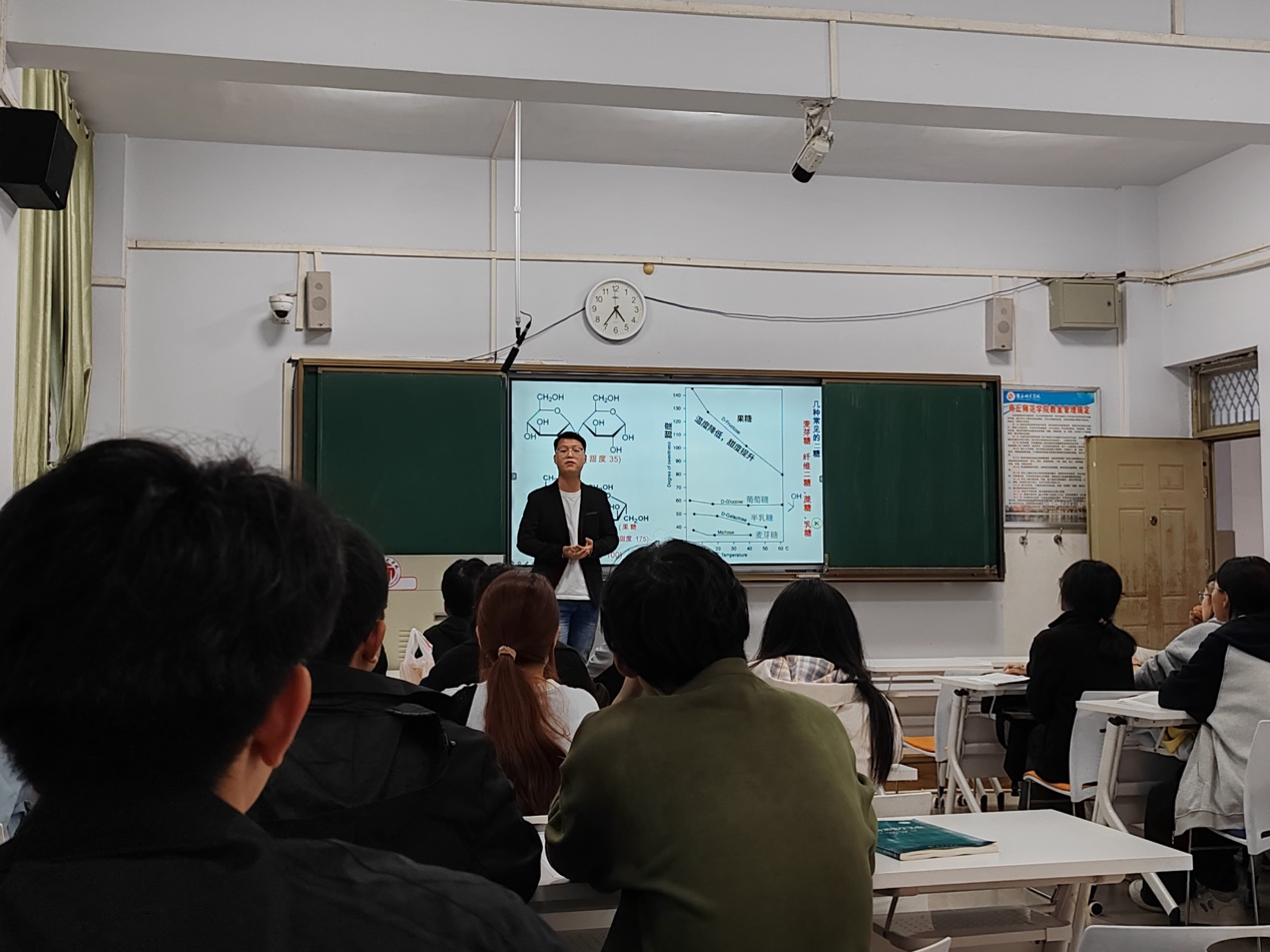 在课堂教学中,朱老师以“生命的化学基础”为主线,系统讲解了水、无机离子、糖类、脂类、蛋白质和核酸等主要生命分子的结构与功能,深入阐释了它们在维持生命活动中的重要作用。课程注重科学史视角的融入,通过介绍生命化学研究的发展历程,引导学生理解科学理论的形成过程与科学探索的思维方法。课堂中,朱老师灵活运用多媒体演示与提问互动,层层递进、启发思考,营造了生动活跃的学习氛围,学生参与度高、课堂反响热烈。