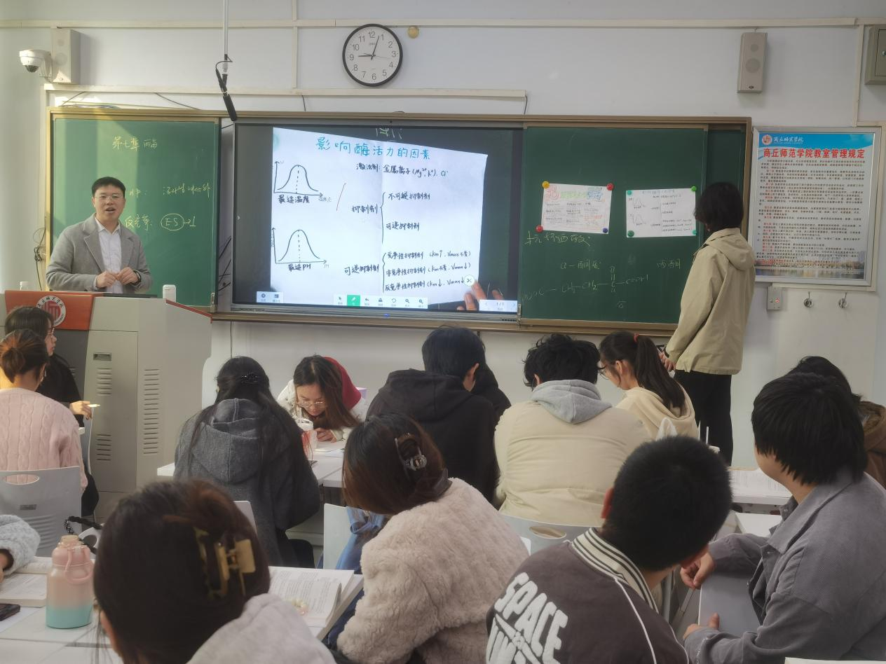 2025年10月28日上午,williamhill中文张辽老师在睢阳校区1号教学楼406教室举行了《动物生物化学》教学公开课。williamhill中文郭艳教授、席丽副教授、洪一峰、陈冠华、张会军博士等教师莅临现场观摩指导。