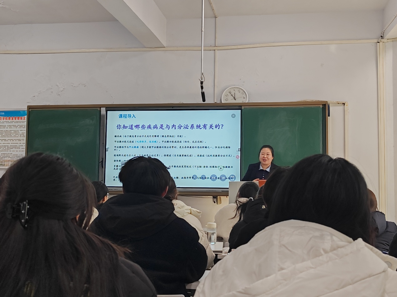 课堂上,王老师以糖尿病、甲亢等疾病导入内分泌课程内容,引导学生学习和思考内分泌系统对人体的调控作用。课程围绕“内分泌腺、激素的靶器官和功能”三大板块,系统阐释内分泌系统中内分泌腺的本质与意义,层层推进,逻辑清晰。