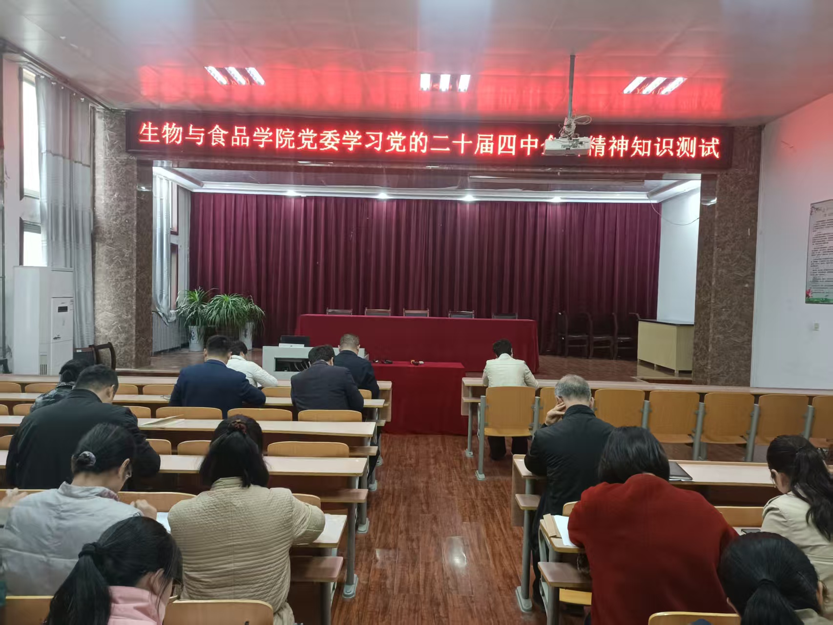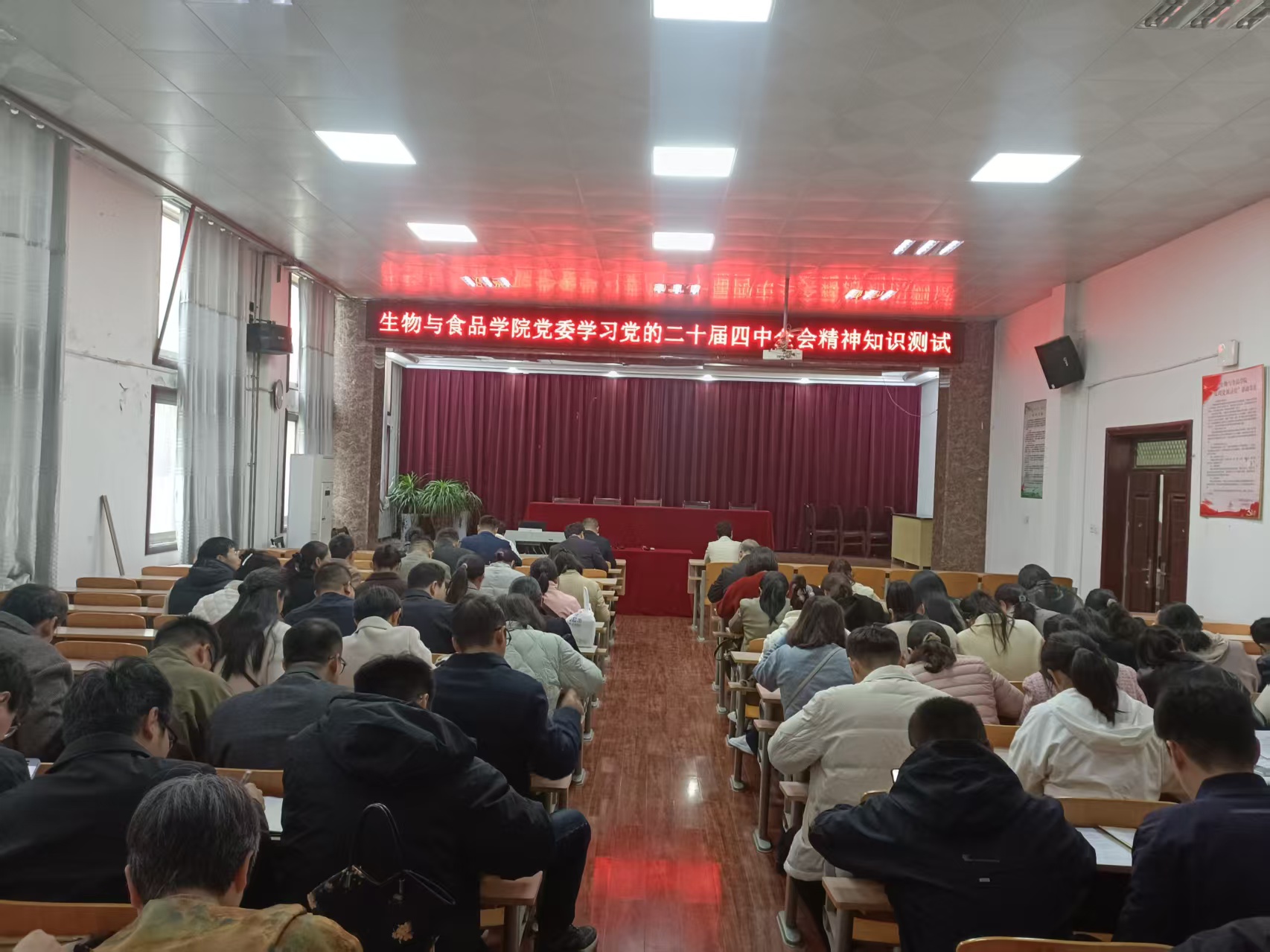 为深入学习党的二十届四中全会精神,营造浓厚的学习宣传氛围,11月14日,学院党委在学院报告厅组织开展了学习党的二十届四中全会精神知识测试活动。学院全体教职工参加。